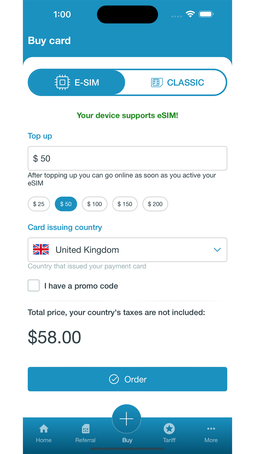 Internet connection anytime, anywhere. Our travel eSIM card will start immediately at the airport, when crossing the border by car and will provide you with communication until the end of your trip.