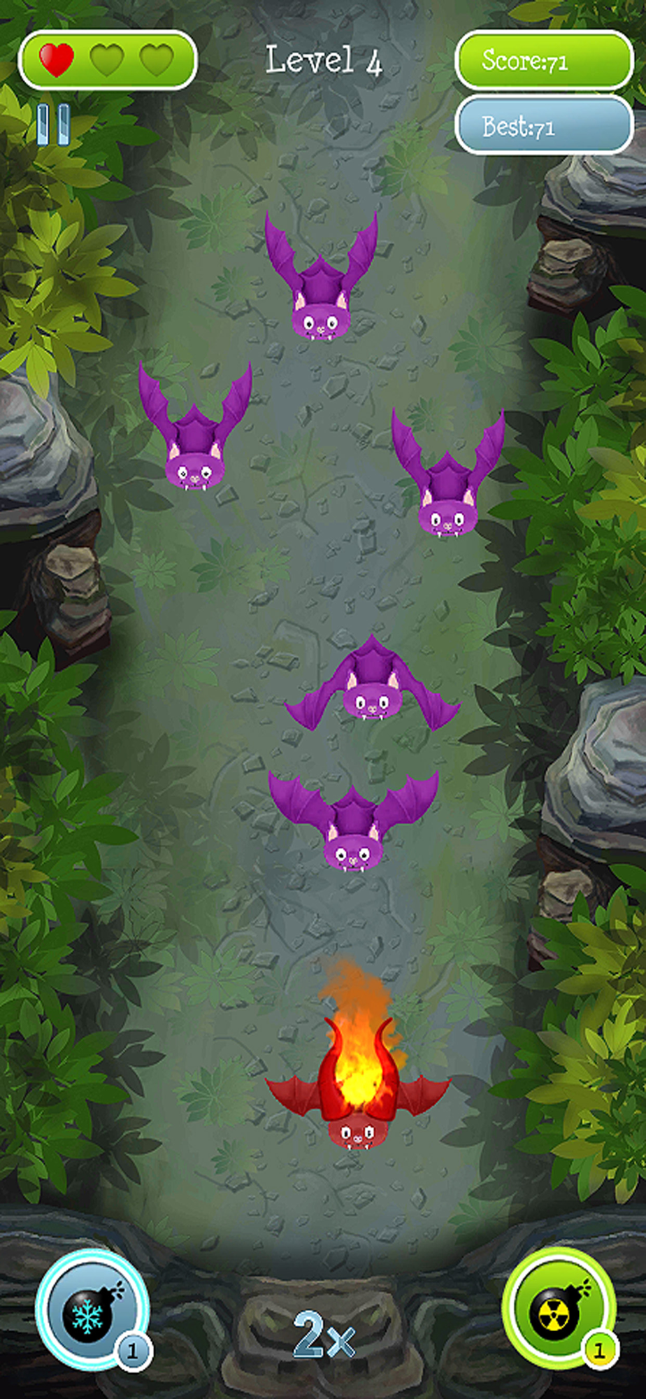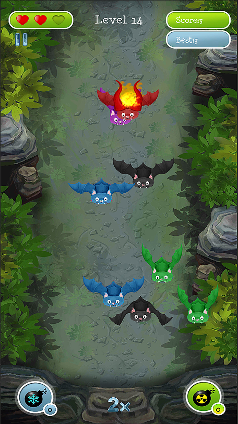 > Arcade mode: Play continuously and lose when you to allow 3 Bats to escape.