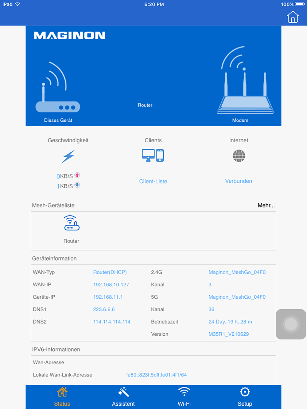The app for the Maginon MC-1200AC WIFI system provides you with a powerful app with which you can set up and manage your home network easily and intuitively.