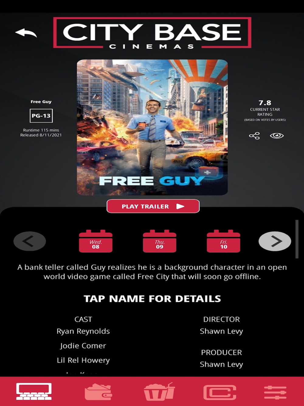 City Base Cinemas' new mobile app offers a convenient way to purchase tickets to see the hottest new movies! Advanced seat selection allows you to know where you are sitting before you arrive at the theatre. Pre-order concessions from the comfort of your couch.