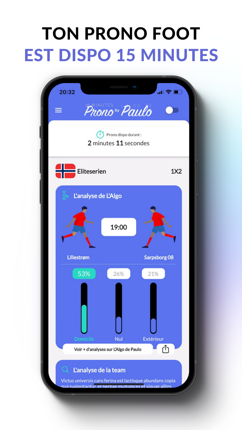 Un pari foot 100% gratuit, issu de L’Algo de Paulo et envoyé chaque jour par notification, mais disponible… seulement un quart d’heure !