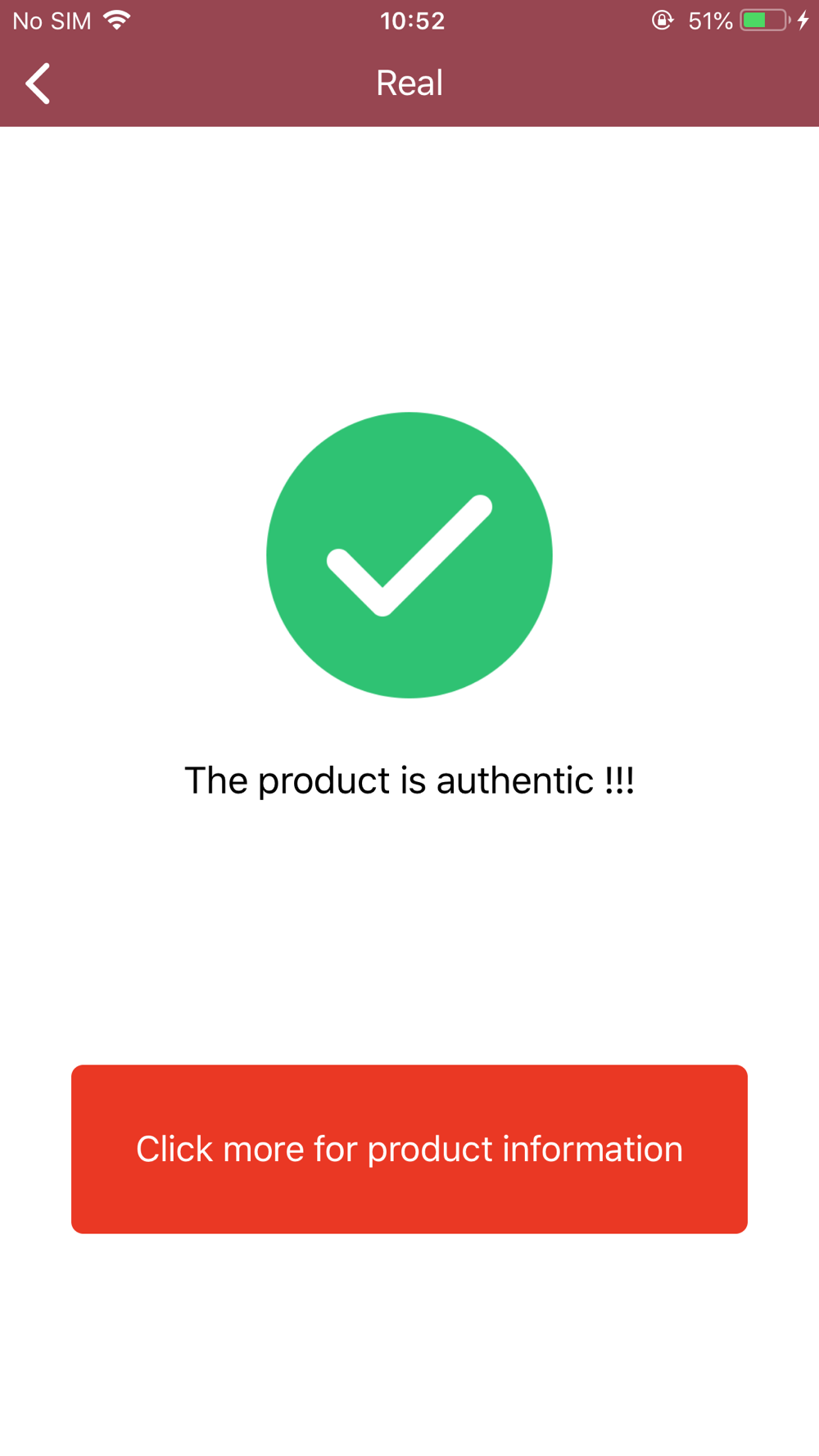 6) If the product is real, you will receive the scanned message as congratulations. If the product is suspected as fake, you will receive the scanned message as beware.
