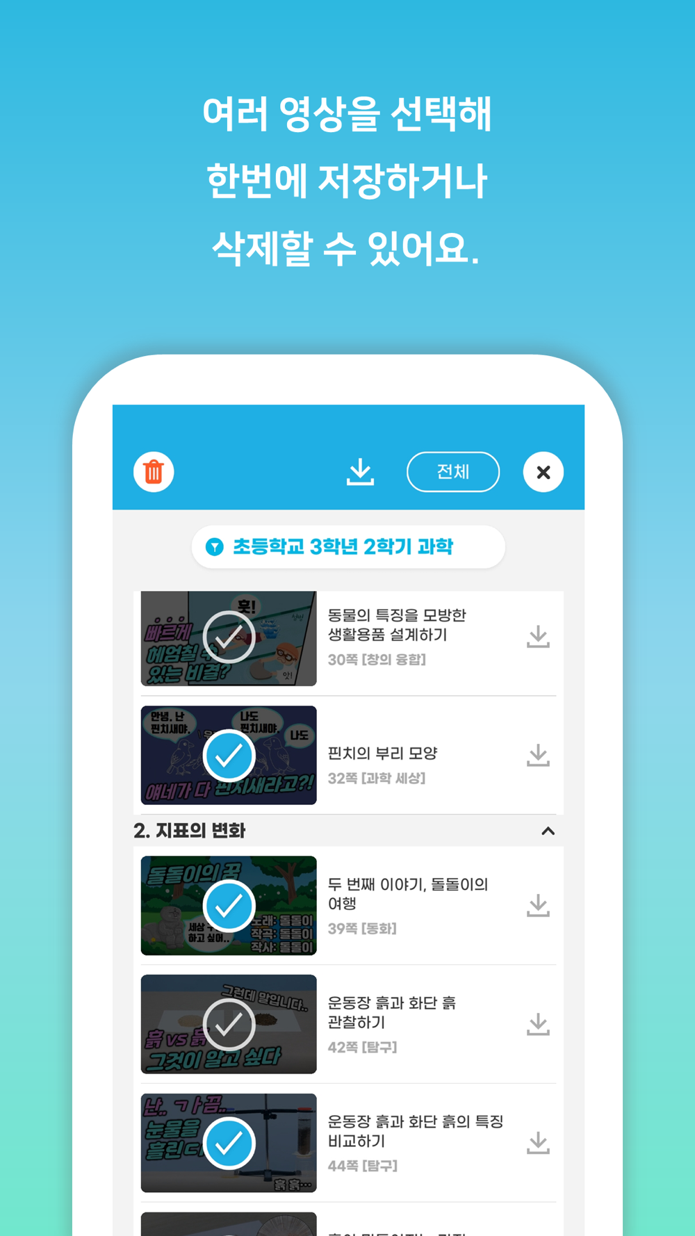 4.여러 영상을 다운로드하고 삭제할 수 있어요.