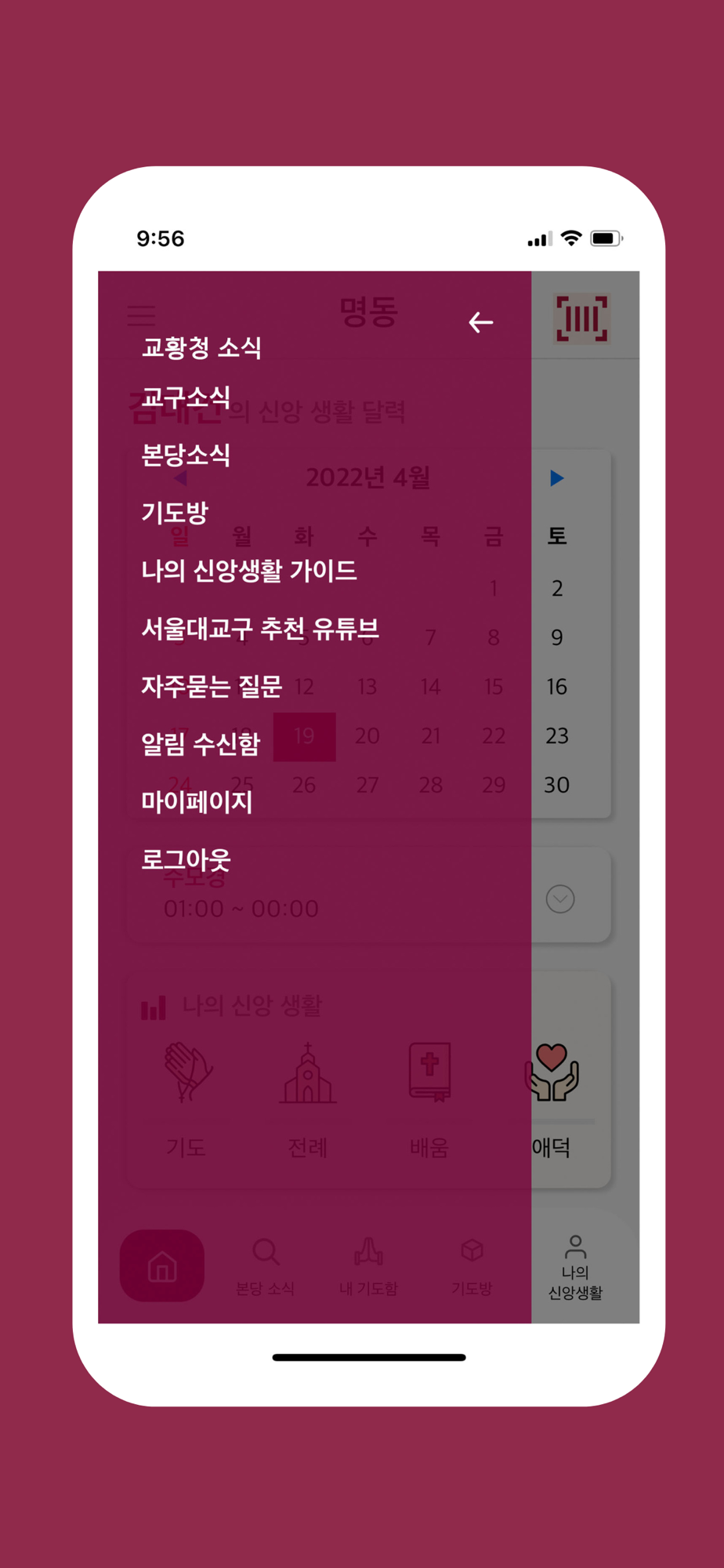 천주교 서울대교구 사목국에서 제공하고 본당별로 운영되는 본당 커뮤니티 활성과 개인 신앙생활을 돕기 위한 어플리케이션입니다.