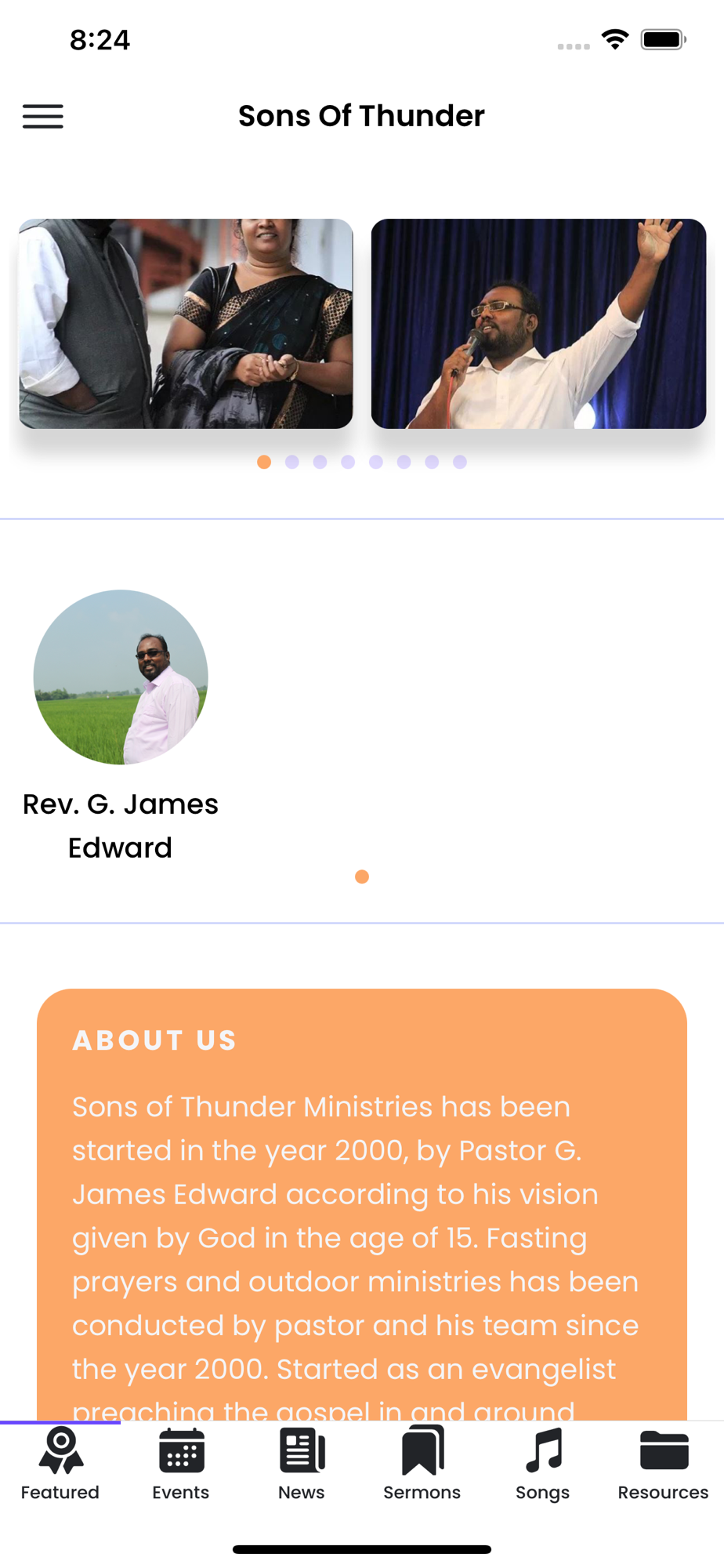 The events and news sections give you a quick glimpse of what's coming in the current week and the highlights of what happened in the previous one. This helps you in planning to attend any event and also gives you an opportunity to be informed about what your church had been doing in the past week. The image carousel (Featured Images Section) in your home screen brings you to the key events through photos – a great way to take a digital peep into your church.