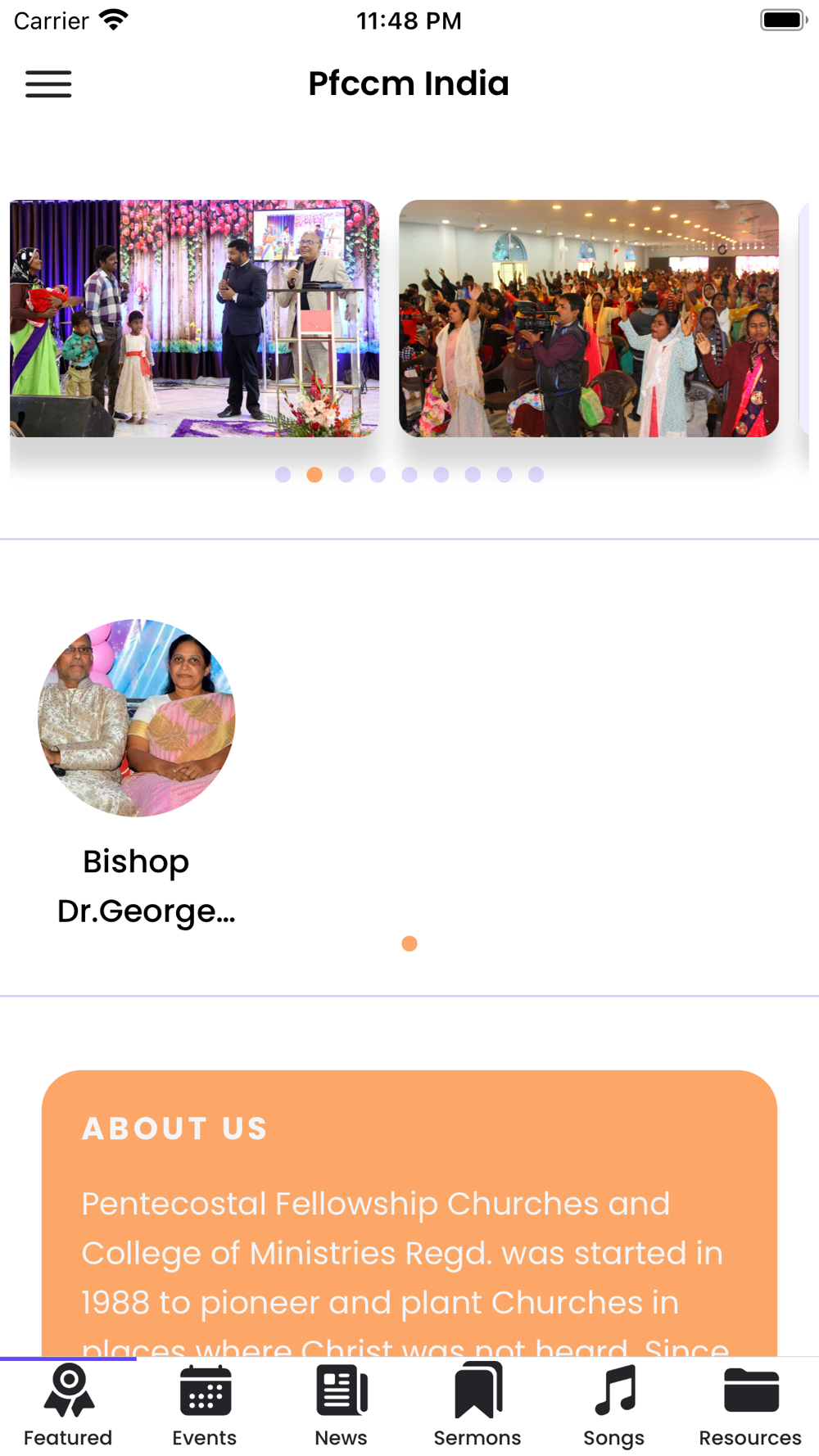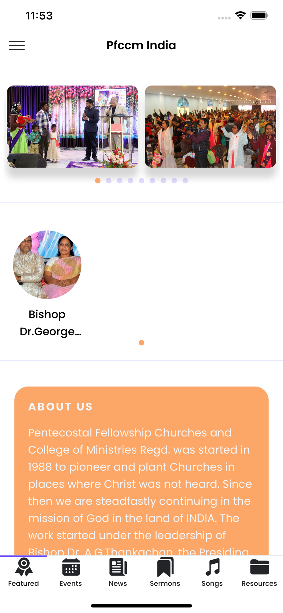 The events and news sections give you a quick glimpse of what's coming in the current week and the highlights of what happened in the previous one. This helps you in planning to attend any event and also gives you an opportunity to be informed about what your church had been doing in the past week. The image carousel (Featured Images Section) in your home screen brings you to the key events through photos – a great way to take a digital peep into your church.