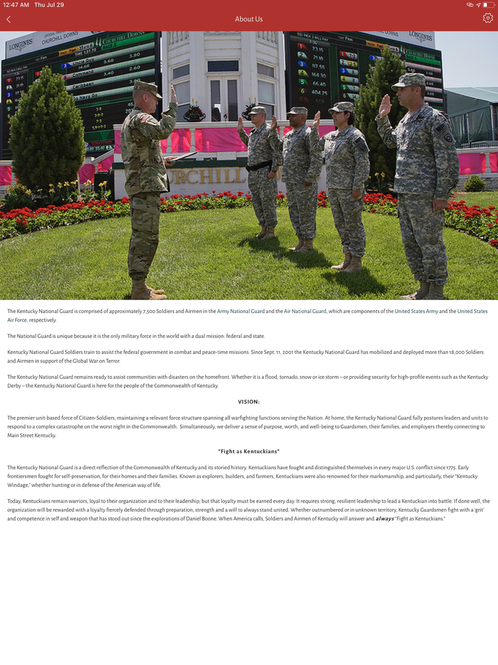KYNG Soldier and Family Readiness is the official app of the Kentucky National Guard with Kentucky Guard news, photos, videos, events, resources, and contact information.