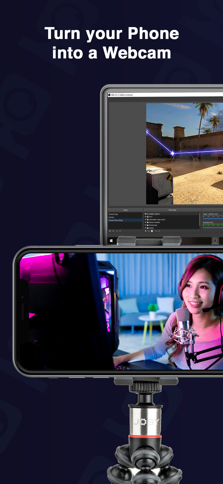 Easily turn your phone into a high definition Mac or PC webcam. PhoneCam turns your phone into a camera source in OBS Studio.