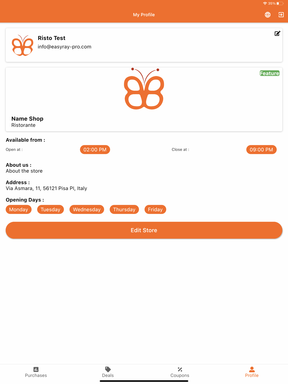 This app allows a shop, restaurant or any business that sells coupons or services, to be able to publish offers and promotions, as well as to receive and manage purchases made by users.