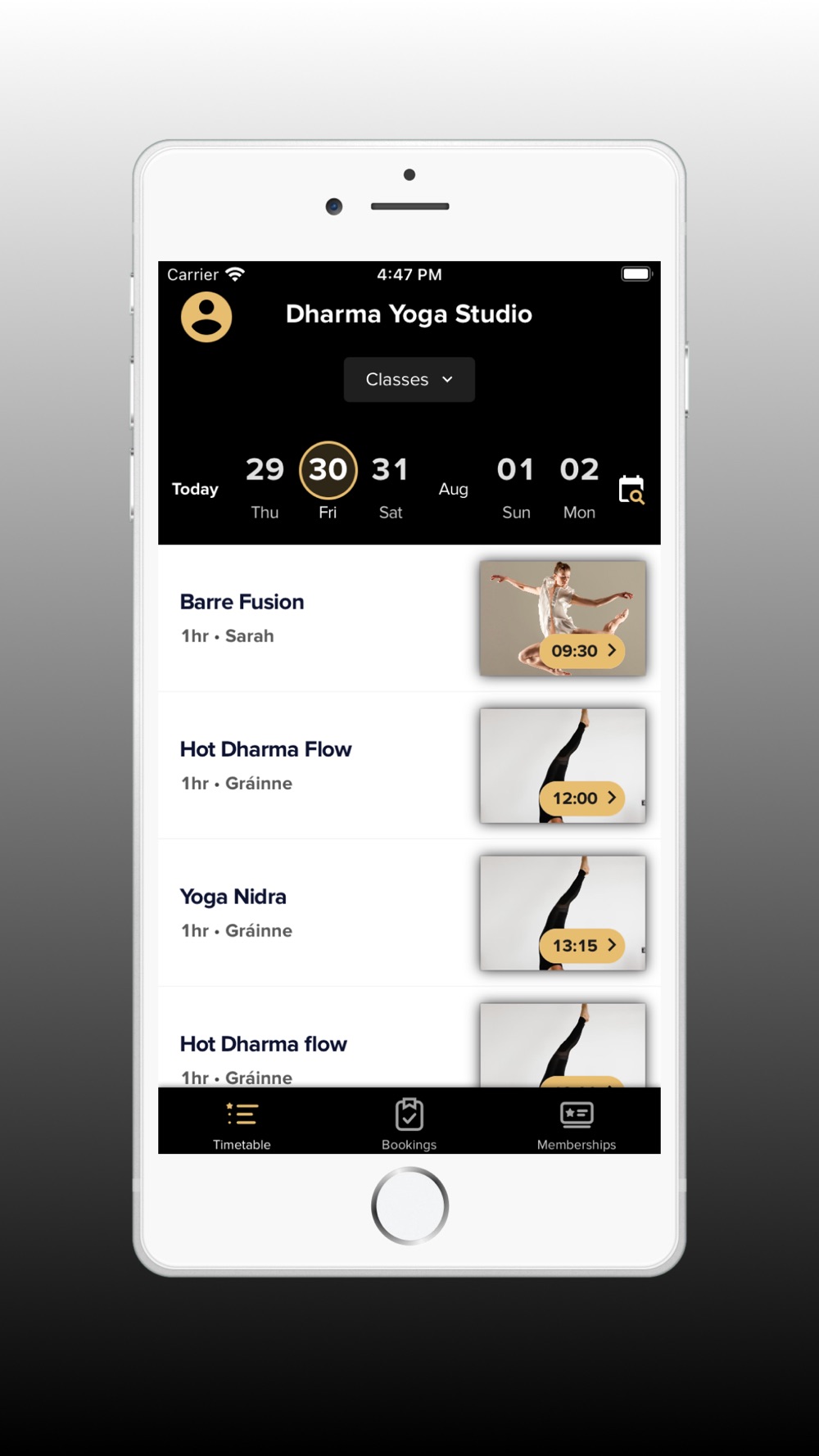 Download the Dharma Yoga Studios app to easily book classes and manage your fitness experience - anytime, anywhere. Make a reservation, get added to a wait list, purchase class packages, check your profile and membership status, keep up to date with the latest products and services, and more – all from your device.