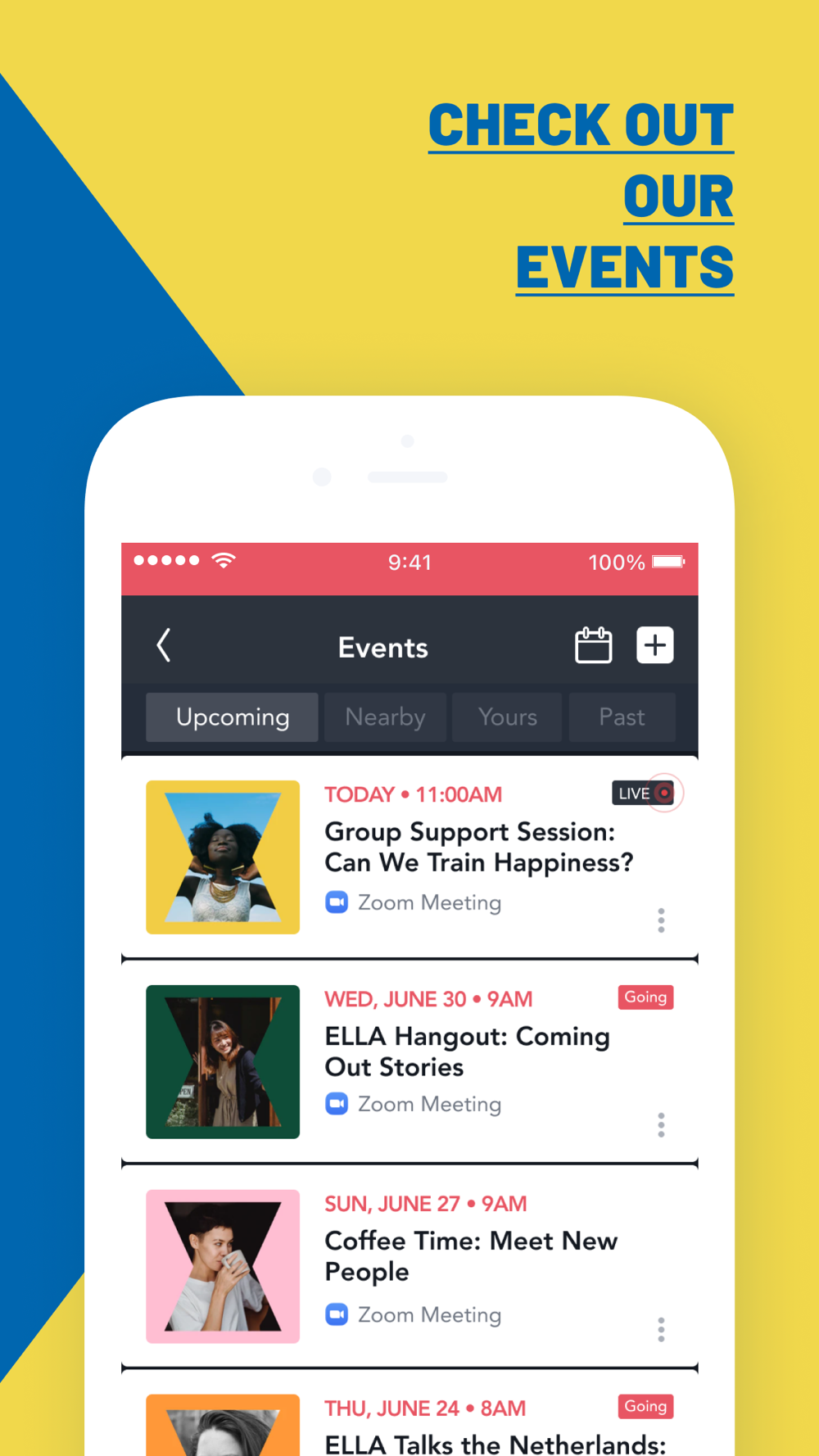 Download ELLA to find your people! Interact with others across the world or around the corner.