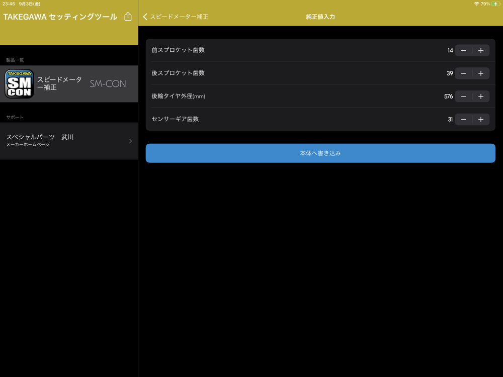 スプロケットの歯数(丁数)やタイヤサイズ変更に合わせメーターの速度表示を正確にする事が可能になります。スマートフォンを使用し、スピードコンローラーをBluetooth接続、変更数値を入力するだけで補正が手軽に行えます。