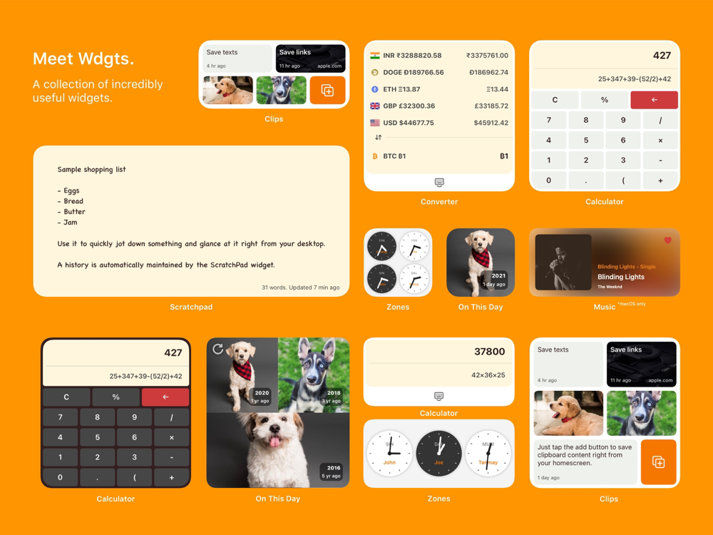 Always visible, glanceable widgets just like on iOS, now on your Mac. Wdgts is the first ever app to focus primarily on desktop widgets.