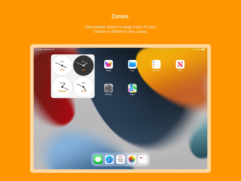 - Zones: Glanceable clocks to keep track of your friends in different time zones.