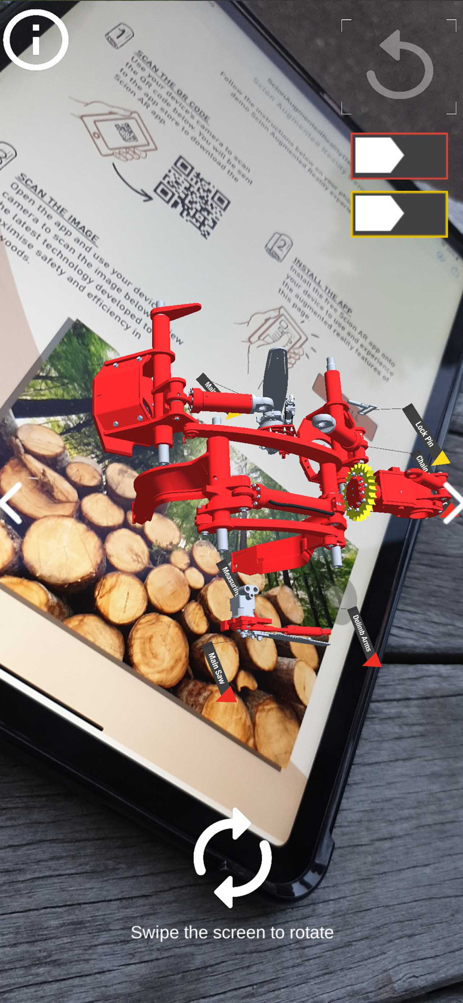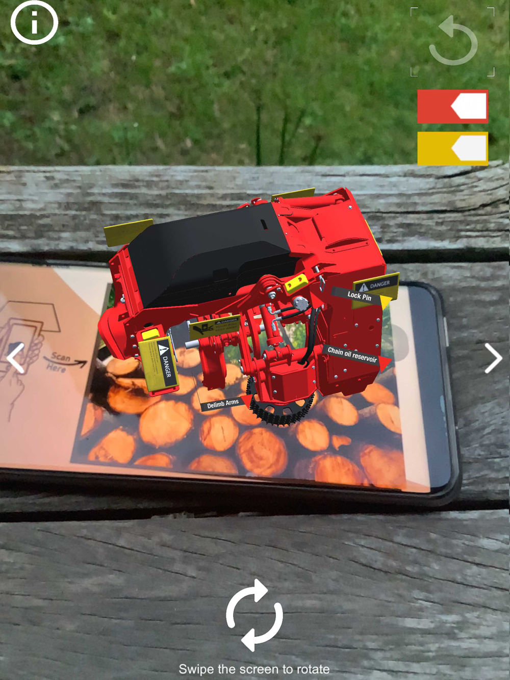 This app is useful and requested as it helps demonstrate parts of the harvester head that are commonly un-safe to view in the real world. It is an educational pocket tool. Use this app as a tool to quickly view the different parts of a harvester head before completing your own maintenance, and view the safety labels to know which areas to be cautious of.