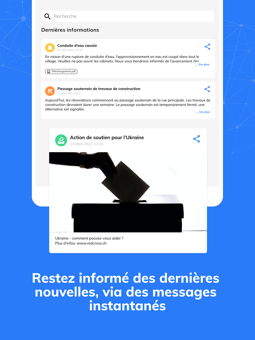 Téléchargez l'application de la ville et faites partie de votre communauté ou, si vous êtes de passage, découvrez les merveilles de la commune de l'intérieur. L'application vous permet d'accéder aux dernières nouvelles, de rejoindre différents groupes en fonction de vos centres d'intérêt, de filtrer les informations, et plus encore !
