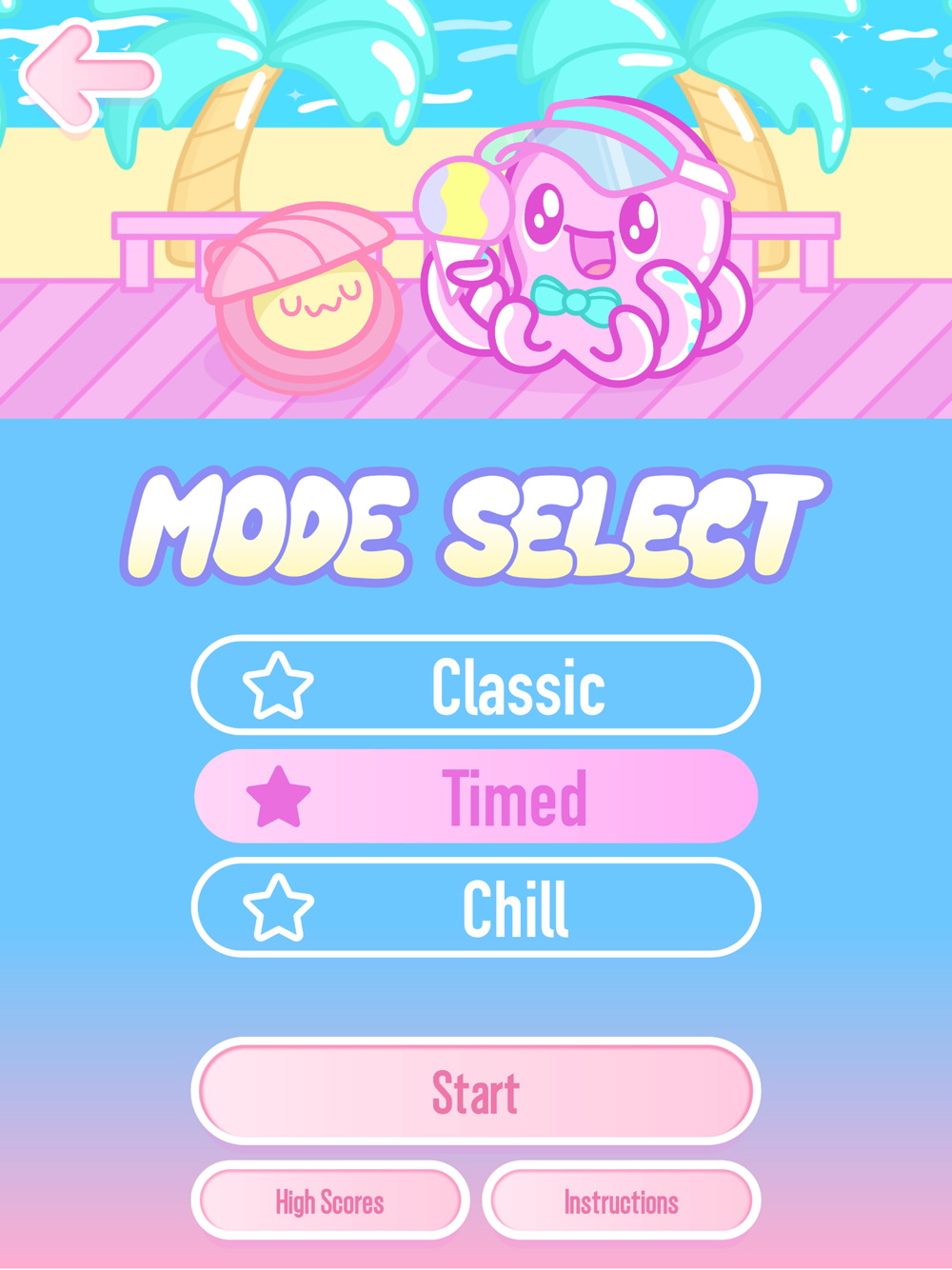 Mixing chill-hop vibes with a gorgeous vaporwave beach art style, chose the game mode to fit your mood: