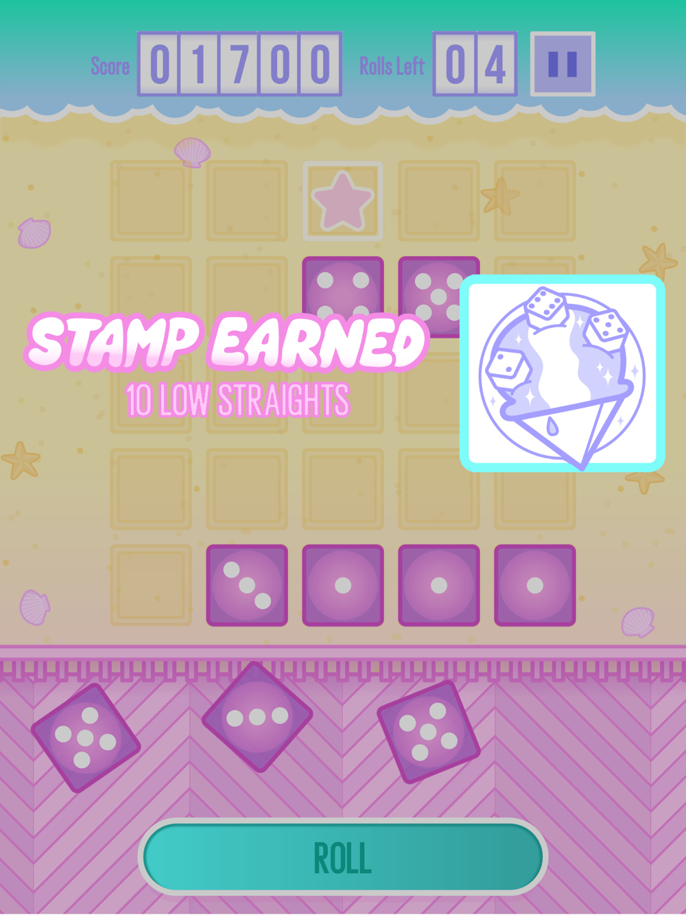 Clear the dice by matching rows on the board. Match dice of the same value, straights, or combos of both if you're getting fancy!