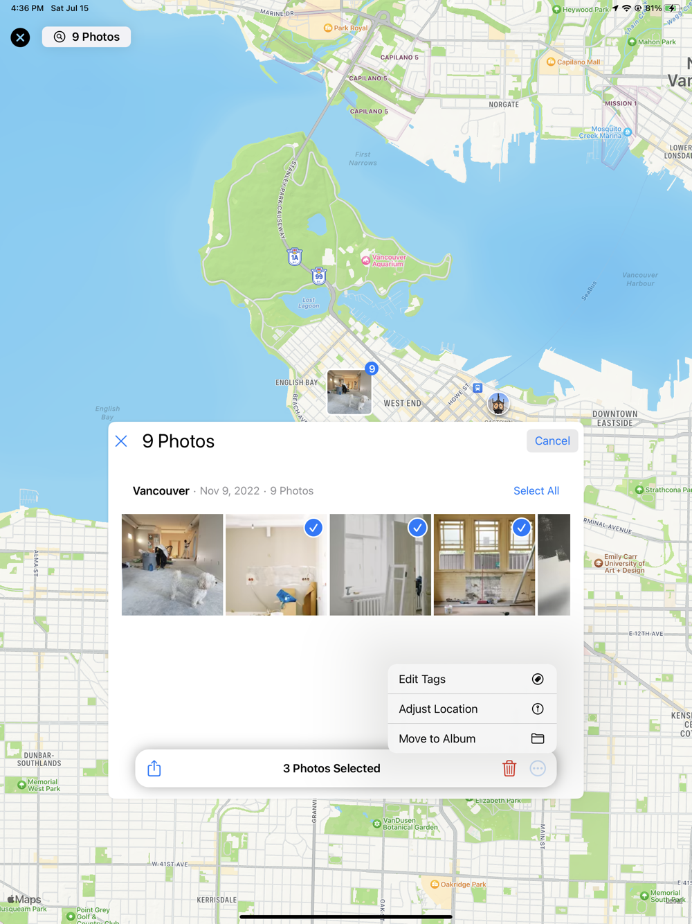 - All photos can easily be exported via the share sheet. Within an album select the photos you wish to share and from there you can email, message or perform any other action you have available on your device.