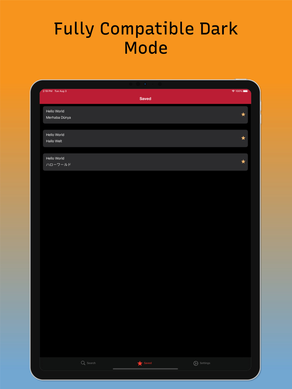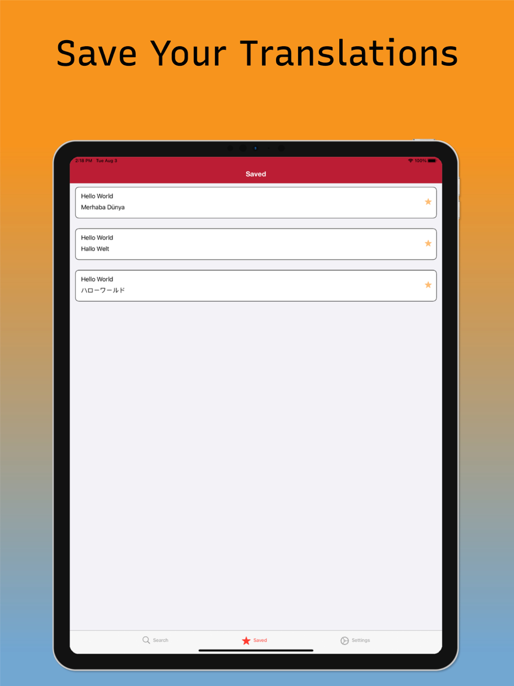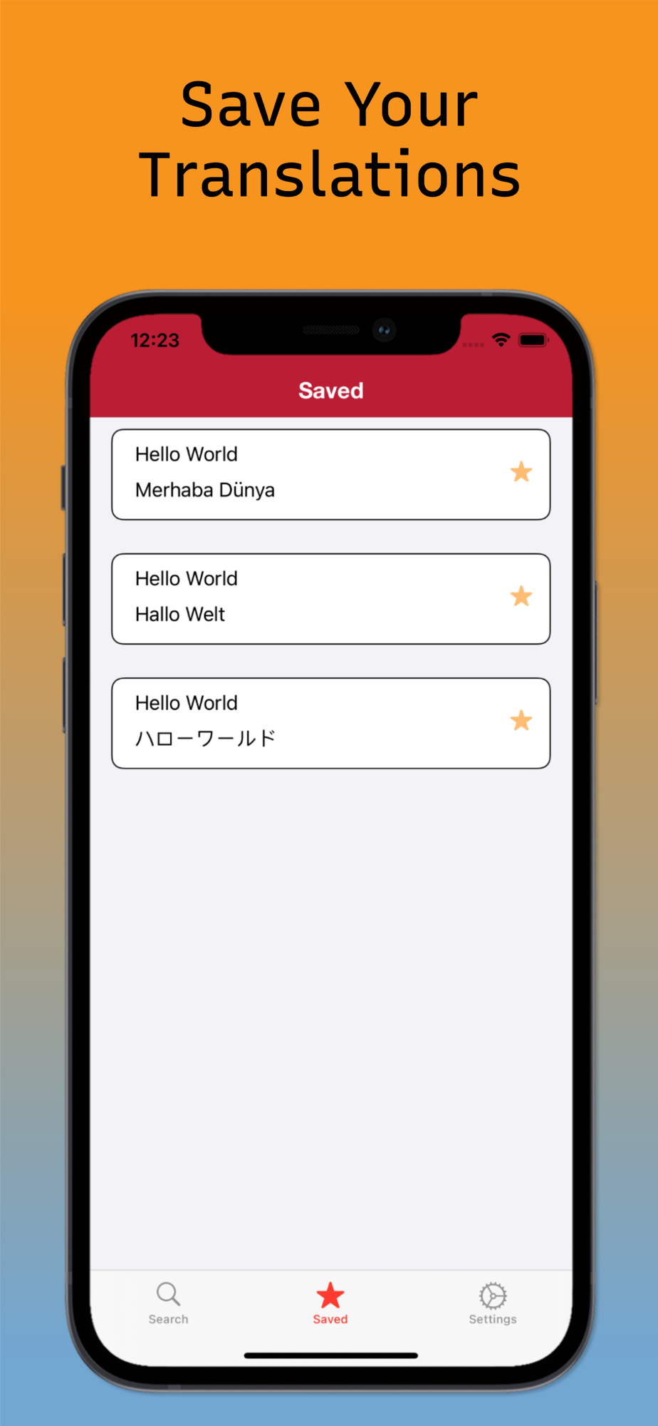 • Saved Section: Star and save translated words and phrases for future reference (all languages).