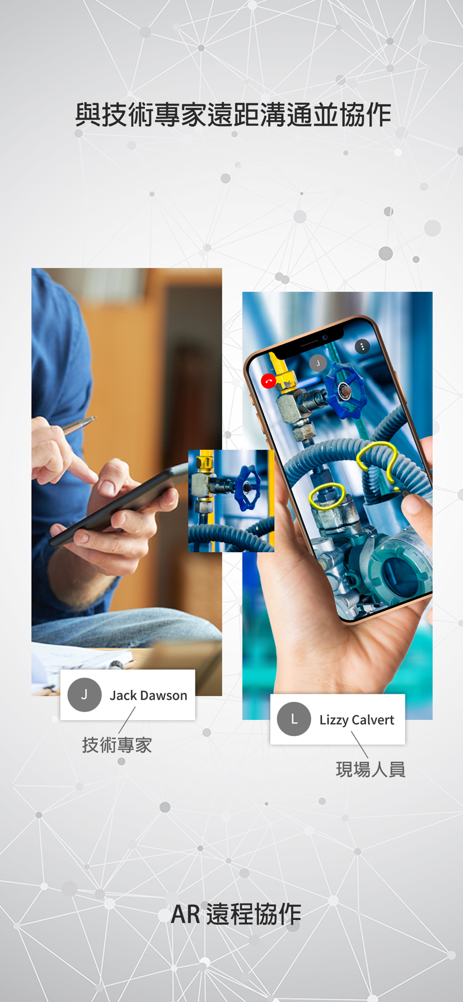 AR遠程協同為一款結合 AR 與視訊通話的服務。技術人員遇到維修問題時,可以透過手機、平板、智能眼鏡,將現場畫面即時分享給遠端技術專家,專家以手機/平板/Web等裝置在畫面上標註有效改善遠程協作溝通的種種問題,助力企業跨越距離隔閡,整合遠距協作資源、提升協作效率!