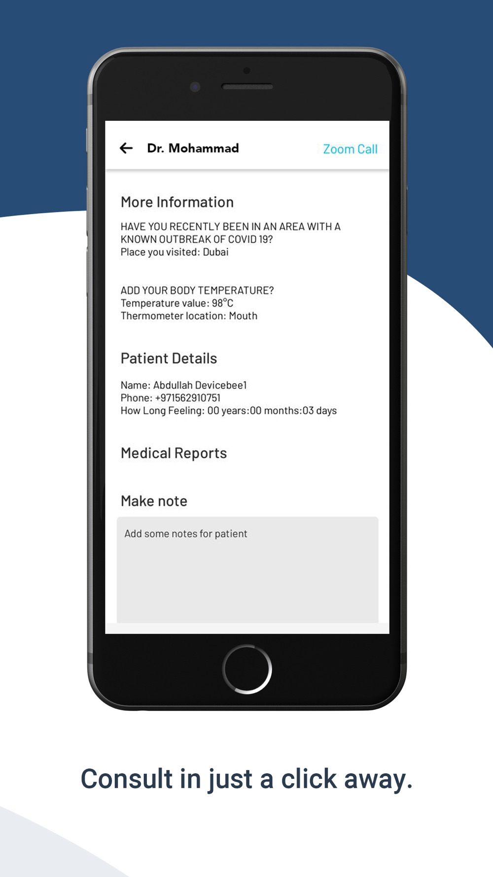 The Doctor can take the tele medics call via Video based on the patient appointment which is done from the patient app named “Aloteb”.
