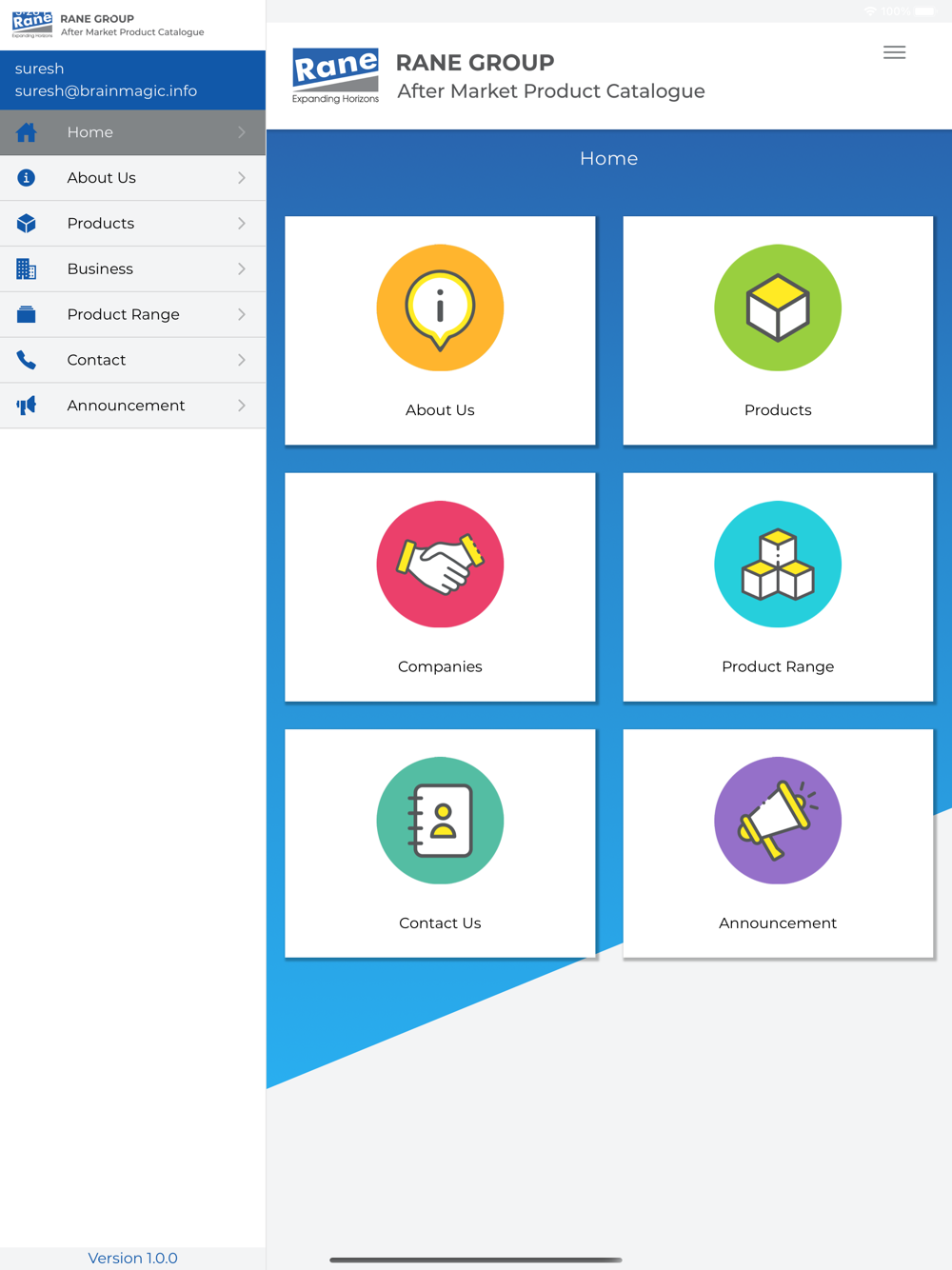 Purpose of the app is to show case Rane Group's Steering and suspension systems for PC, MCV, LCV, HCV and FT segments. And help to reach Rane team.