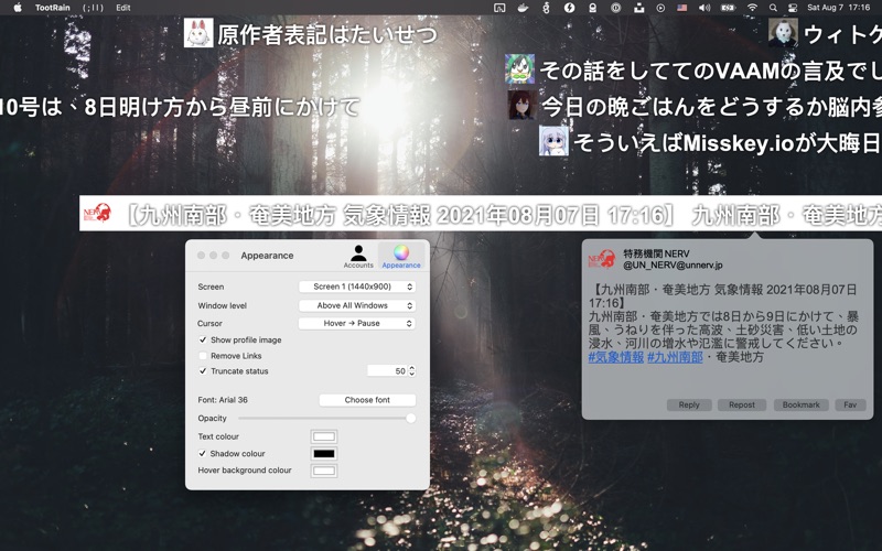 TootRain displays Toots on your Mastodon / Pleroma timeline, on your screens, as comments sliding from right to left.