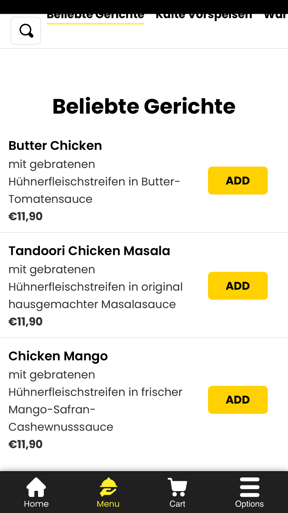- Durchsuchen Sie die Speisekarte des Restaurants und sehen Sie sich alle anpassbaren Optionen im Voraus an