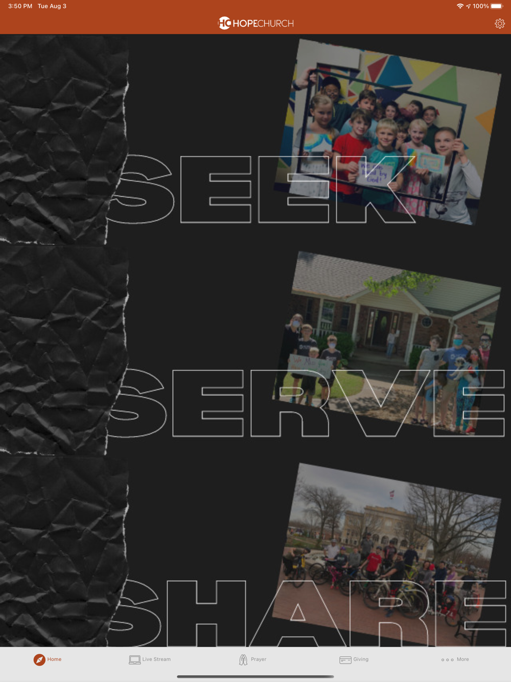 Connect and engage with the Hope NWA app! You will be able to fill out prayer request cards, give, read the bible, and more!