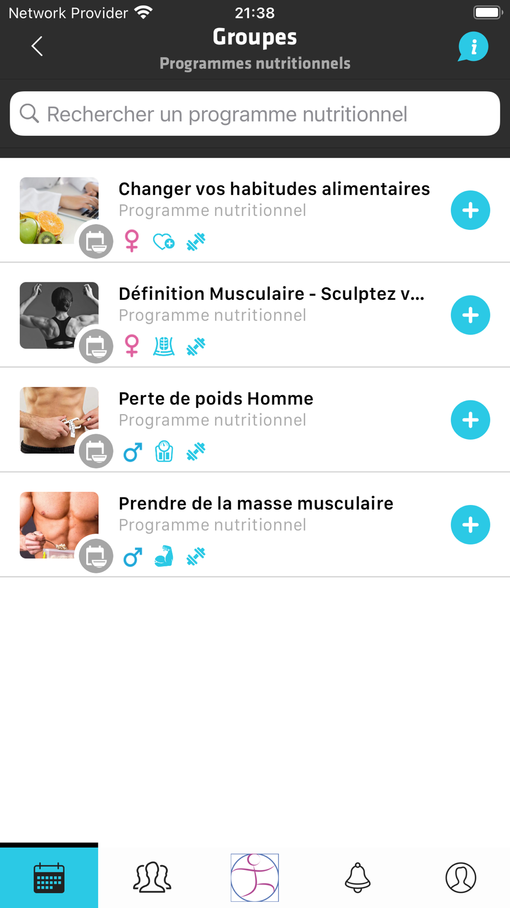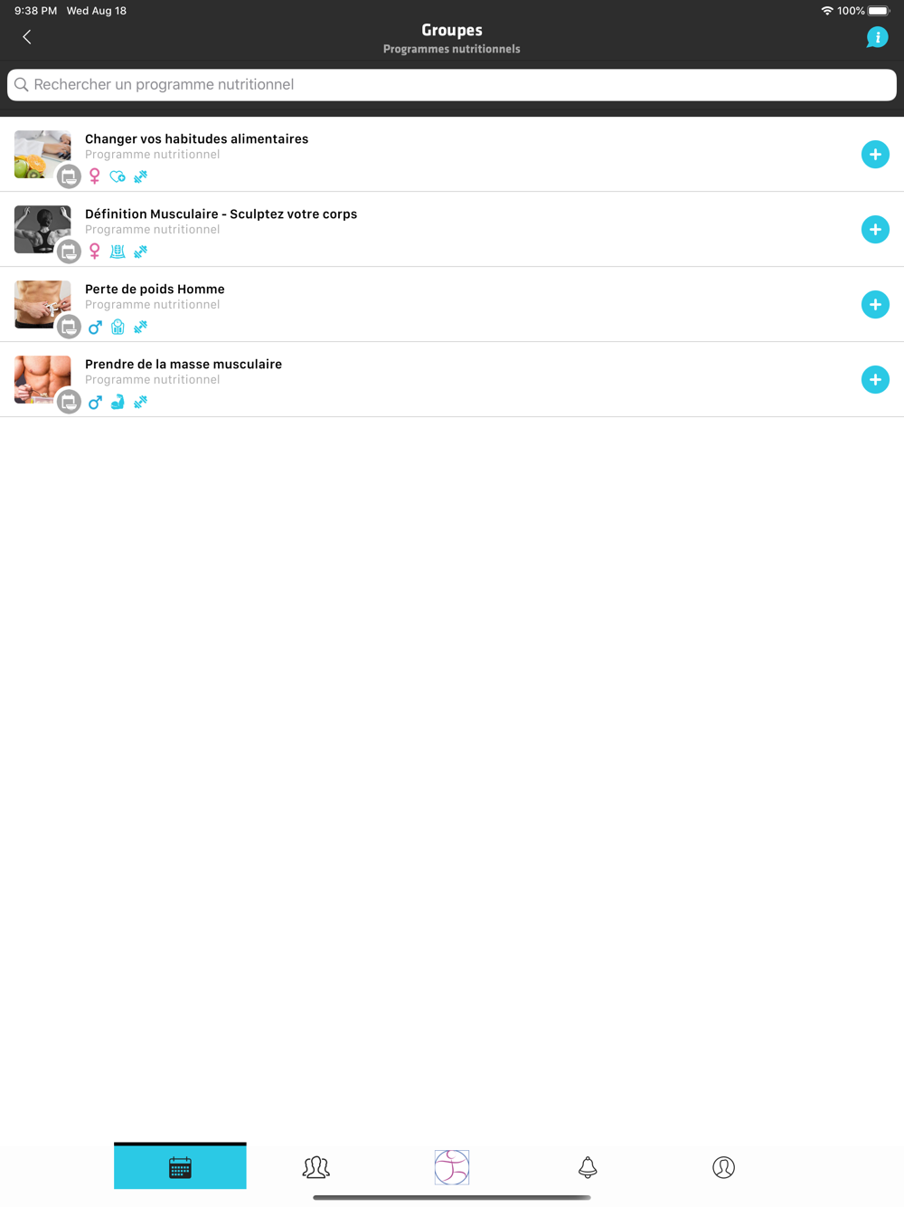 Dans le planning il pourra ajouter lui-même les programmes sportifs et nutritionnels conçus par les Coachs NBO Well-Being.