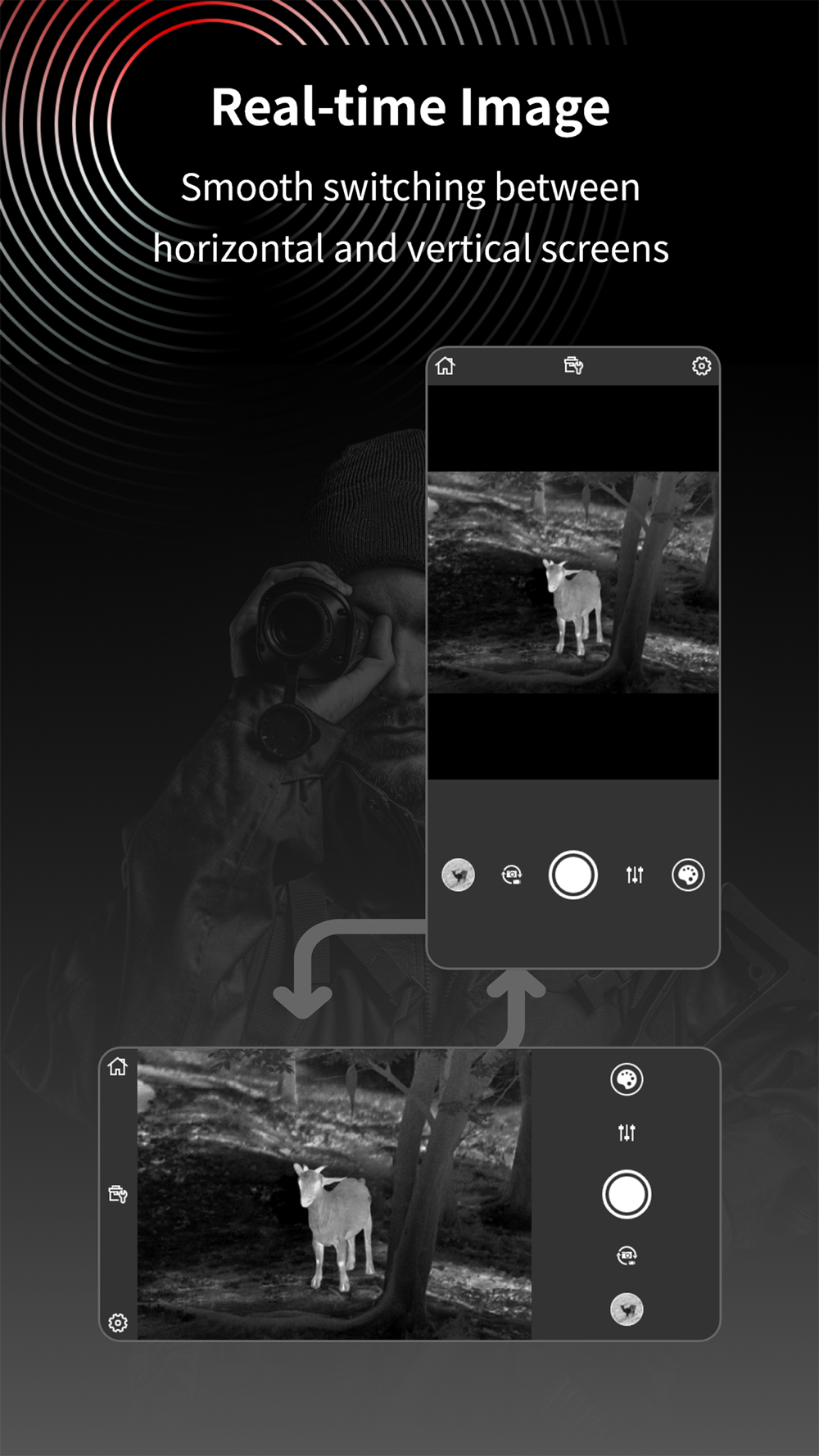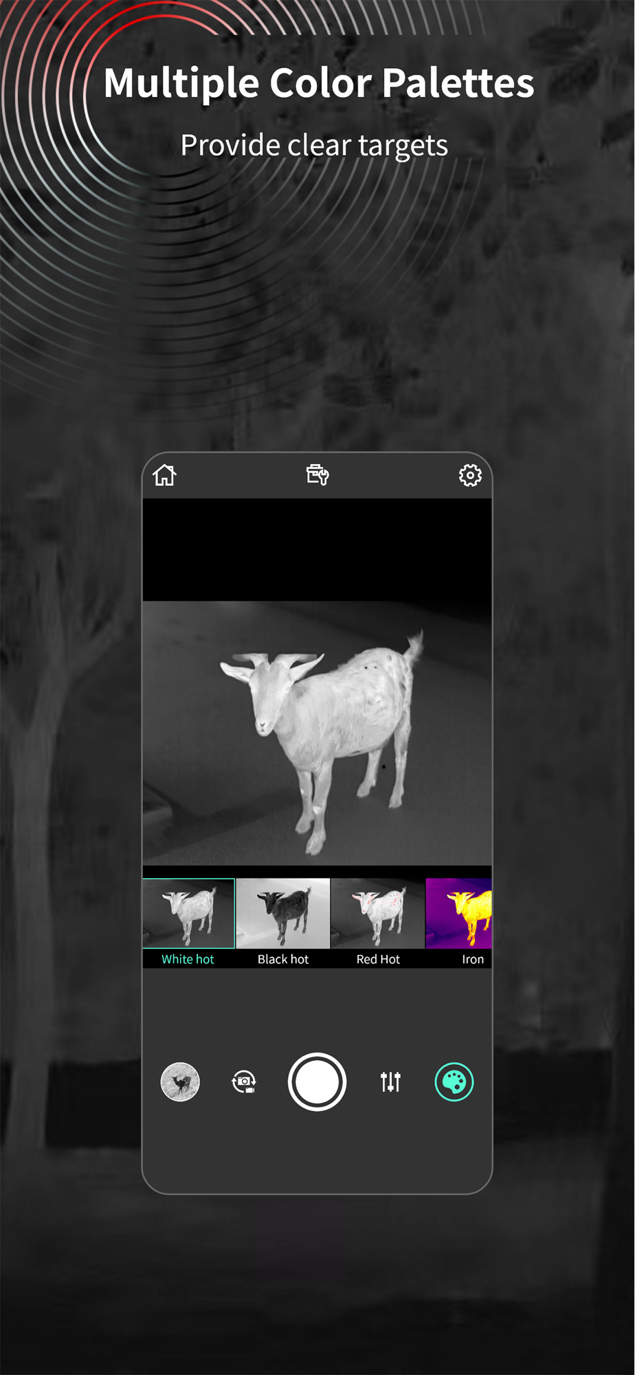 TargetIR, Thermal imaging night vision exclusive mobile terminal APP. By connecting the device to Wi-Fi, users can preview high-definition images of the thermalimager in real time and remotely control it with full functions. In addition to taking photos and recording videos, this APP can also remotely obtain the image library of the thermal imager and share it with other application platforms at any time. It is a mobile APP that truly realizes full-function remote transmission and control.