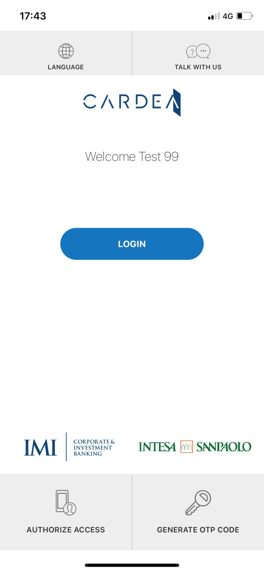 App che permette l’autenticazione a due fattori, tramite riconoscimento biometrico o inserimento di pin personale, per l’accesso con profilo dispositivo al nuovo portale Cardea dedicato ai clienti istituzionali di Intesa Sanpaolo
