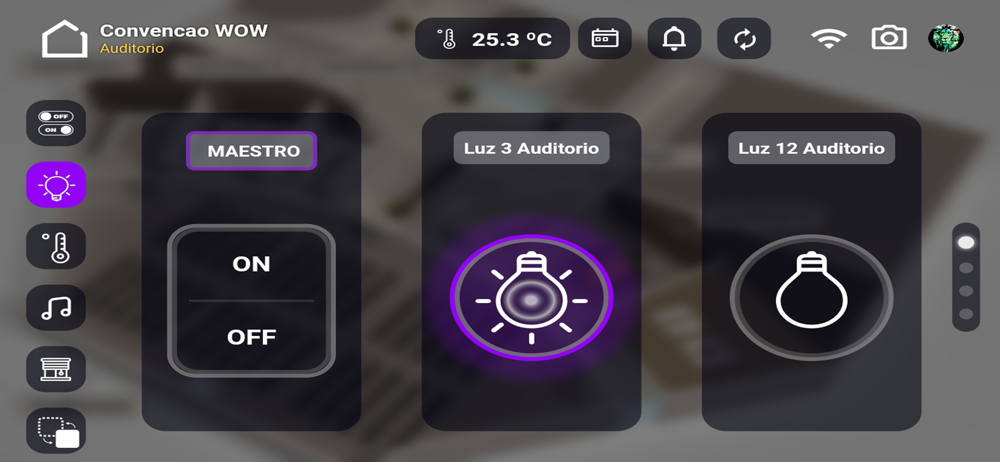 Com o novo APP da WOW, o WOW EXP PLUS você controla todos os ambientes da sua casa inteligente com um simples toque na tela do seu celular ou tablet, nele é possível controlar iluminação, climatização, persianas, multimídia, cenas e outros recursos do sistema WOW de automação