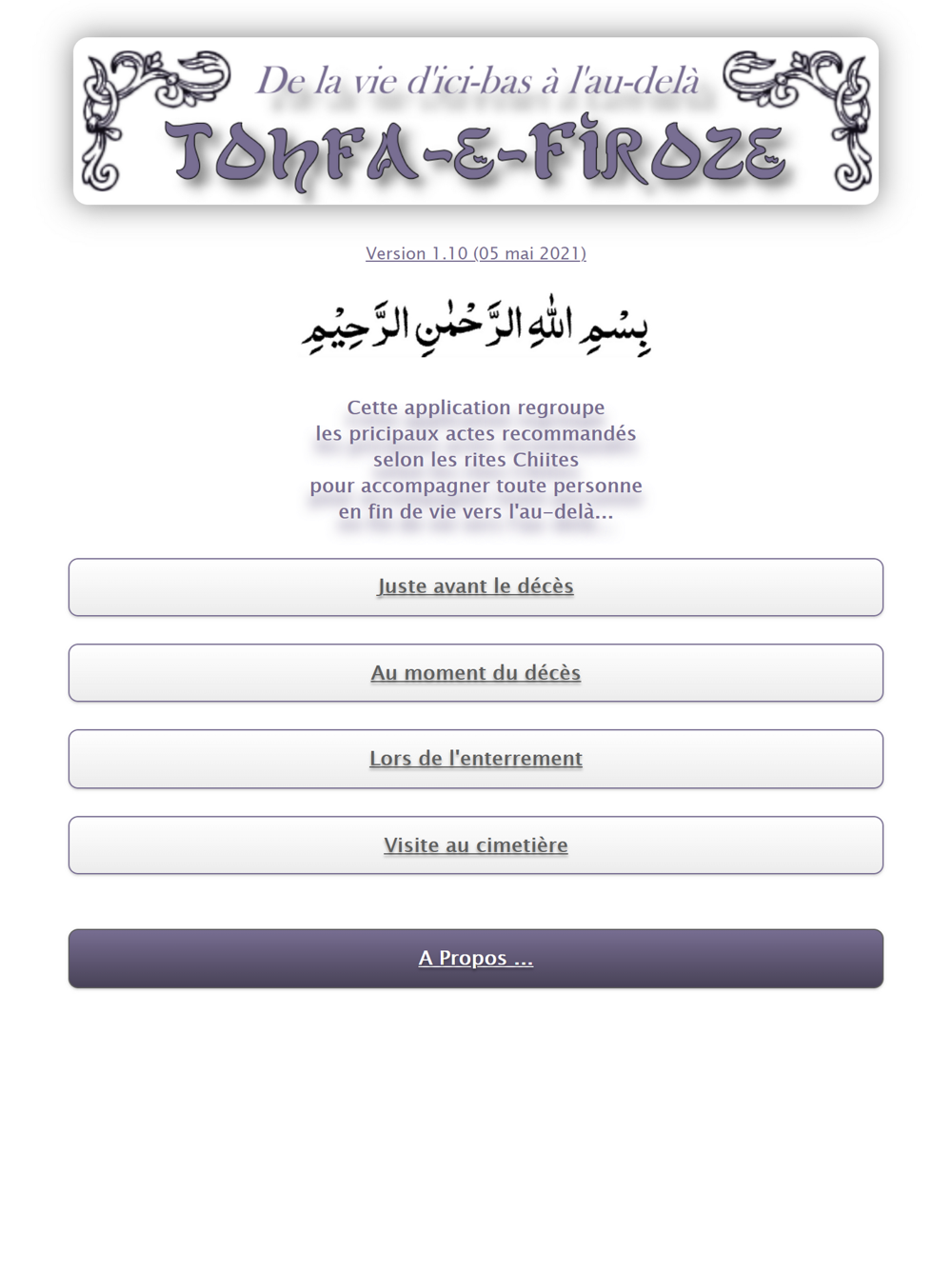 Que cette humble contribution soit dédiée à l'Imam de notre temps, Mohammad Mehdi ('aj) et en mémoire de tous ceux qui ont quitté ce bas monde, dont nos proches défunts.