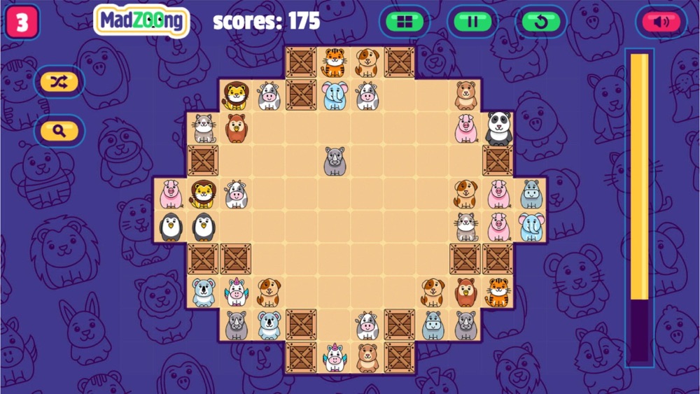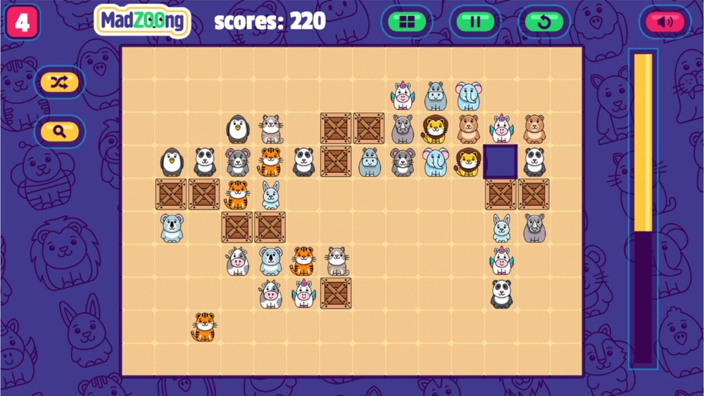 MadZOOng is a matching puzzle game. In MadZOOng, you have to match the same animal icons and try to beat all the levels. Select a tile with an animal icon and click again to move it to another tile. If two of the same animals touch each other, you earn points and destroy the adjacent crates. For maximum amount of points, try to finish the level before the timer on the right runs out. Go ahead and play this exciting puzzle game!MadZOOng is a matching puzzle game. In MadZOOng, you have to match the same animal icons and try to beat all the levels. Select a tile with an animal icon and click again to move it to another tile. If two of the same animals touch each other, you earn points and destroy the adjacent crates. For maximum amount of points, try to finish the level before the timer on the right runs out. Go ahead and play this exciting puzzle game!MadZOOng is a matching puzzle game. In MadZOOng, you have to match the same animal icons and try to beat all the levels. Select a tile with an animal icon and click again to move it to another tile. If two of the same animals touch each other, you earn points and destroy the adjacent crates. For maximum amount of points, try to finish the level before the timer on the right runs out. Go ahead and play this exciting puzzle game!MadZOOng is a matching puzzle game . In MadZOOng, you have to match the same animal icons and try to beat all the levels. Select a tile with an animal icon and click again to move it to another tile. If two of the same animals touch each other, you earn points and destroy the adjacent crates. For maximum amount of points, try to finish the level before the timer on the right runs out. Go ahead and play this exciting puzzle game!