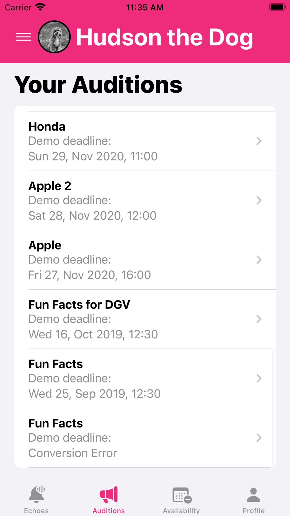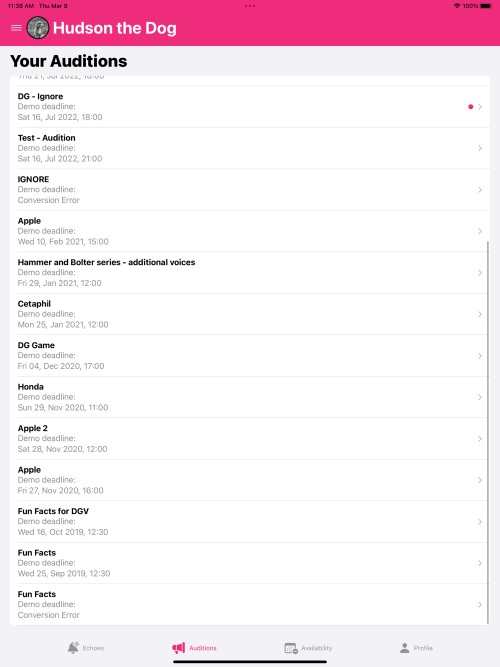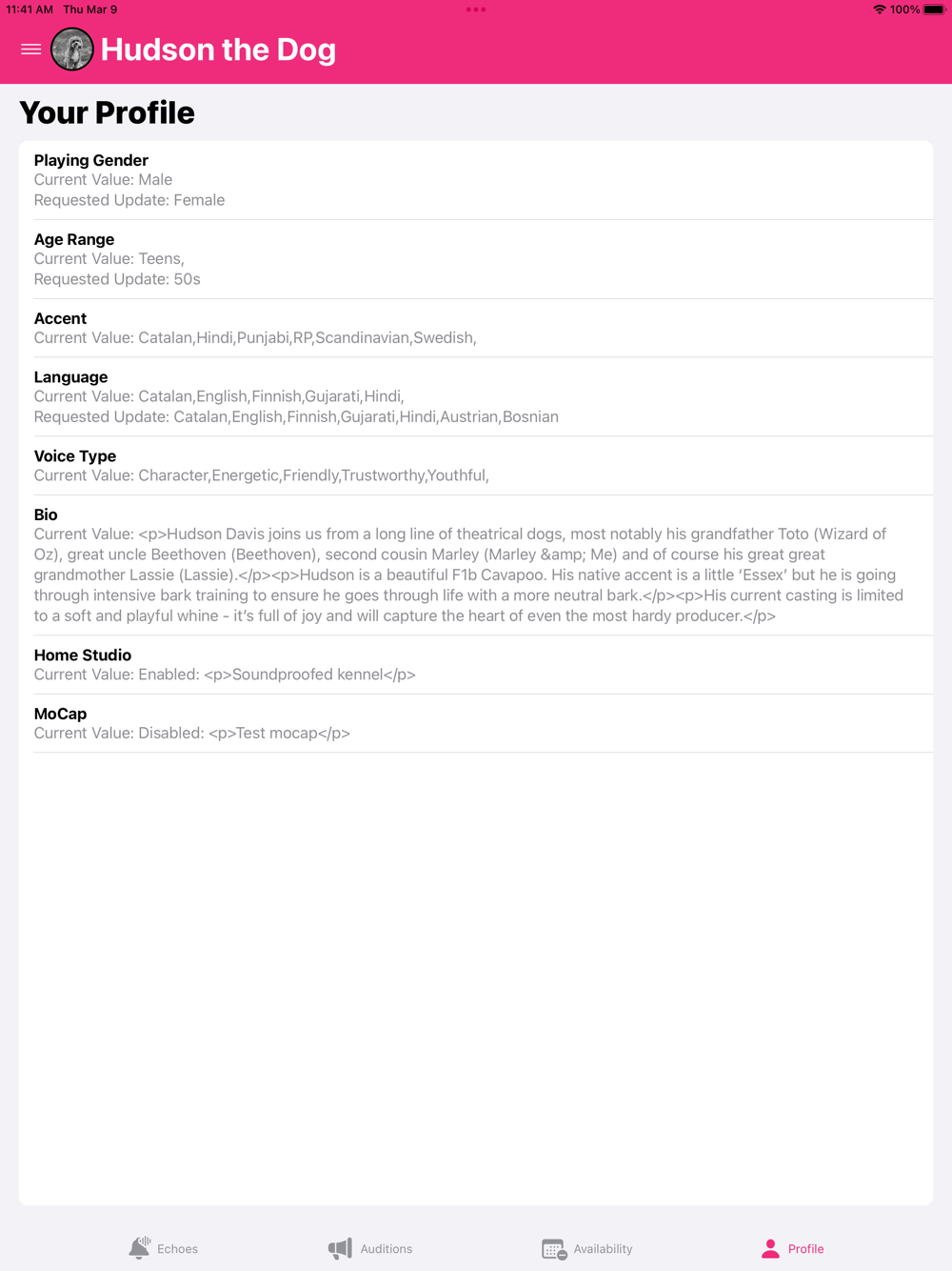 - Respond to Echoes (short messages from the talent agent)