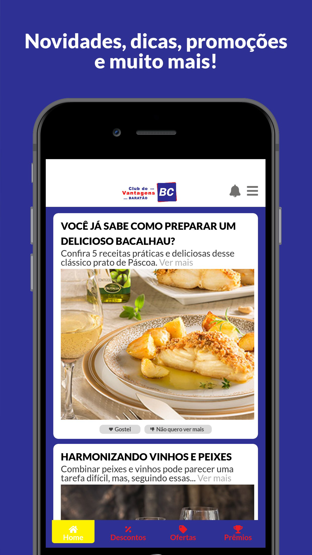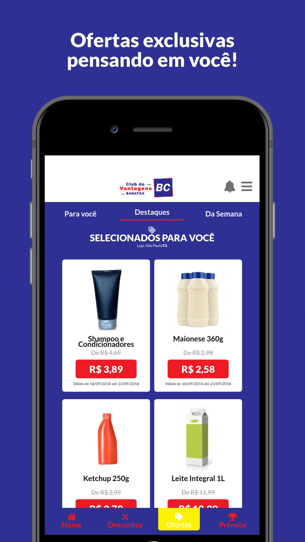 O App Clube de Vantagens Baratão oferece ao participante do programa acesso a benefícios exclusivos, como ofertas personalizadas, descontos exclusivos e prêmios.