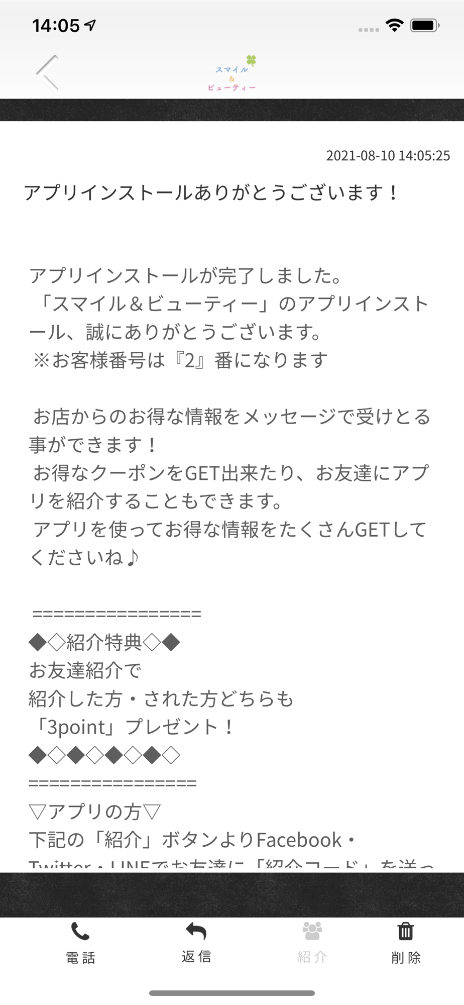 スマイルのアプリをSNSを通じてお友達に紹介する事ができます。