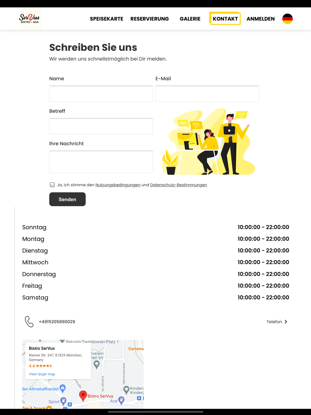 - Sehen Sie den Standort des Restaurants, die Öffnungszeiten und Kontaktinformationen