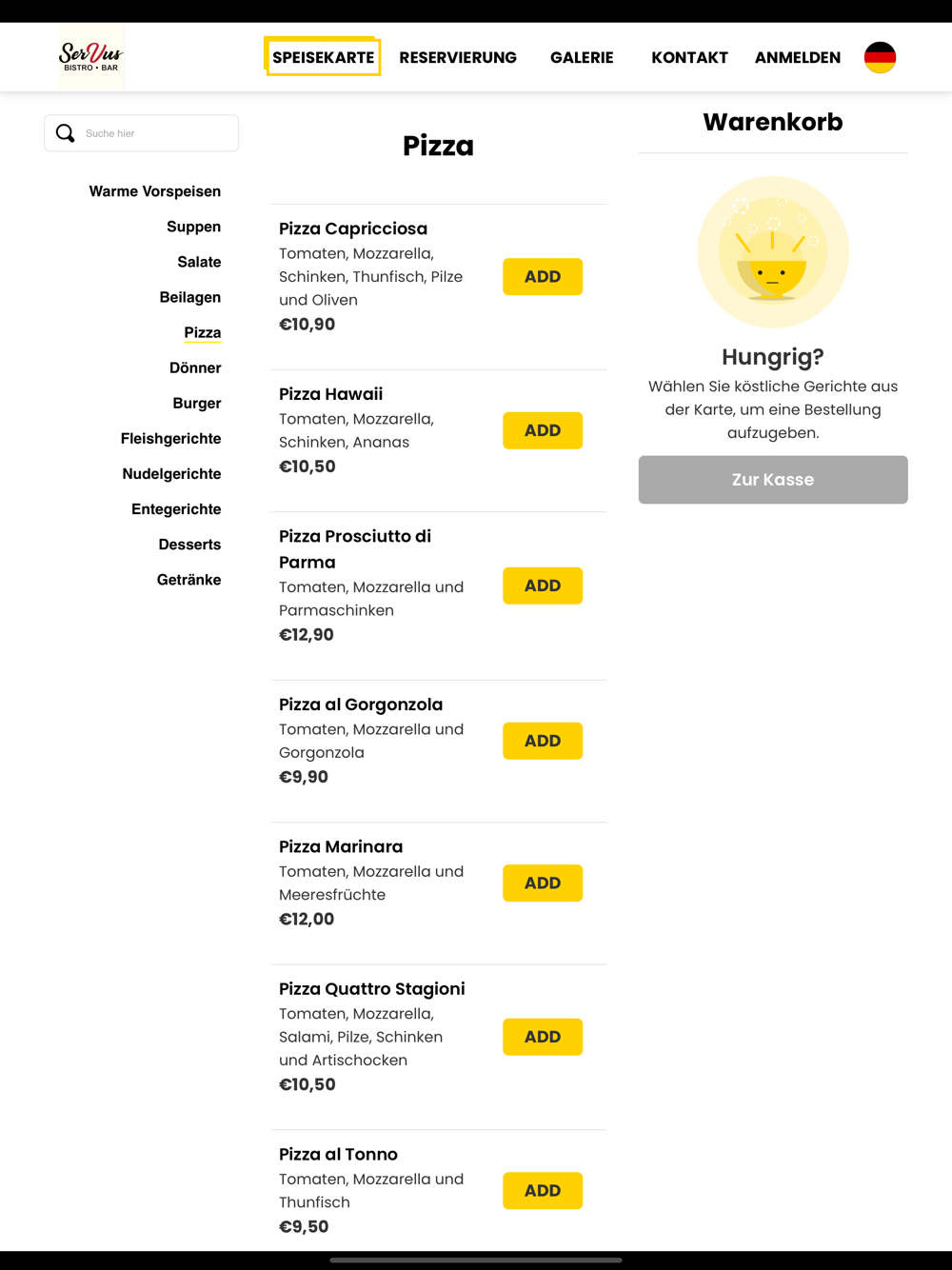 Mit der Bistro serVus Mobile App können Sie Ihre Pizza, Pasta, Salat bequem von zu Hause aus genießen. Stöbern Sie in unserer Speisekarte, wählen Sie die Gerichte aus, die Ihnen schmecken, und geben Sie Ihre Bestellung in Sekundenschnelle auf.