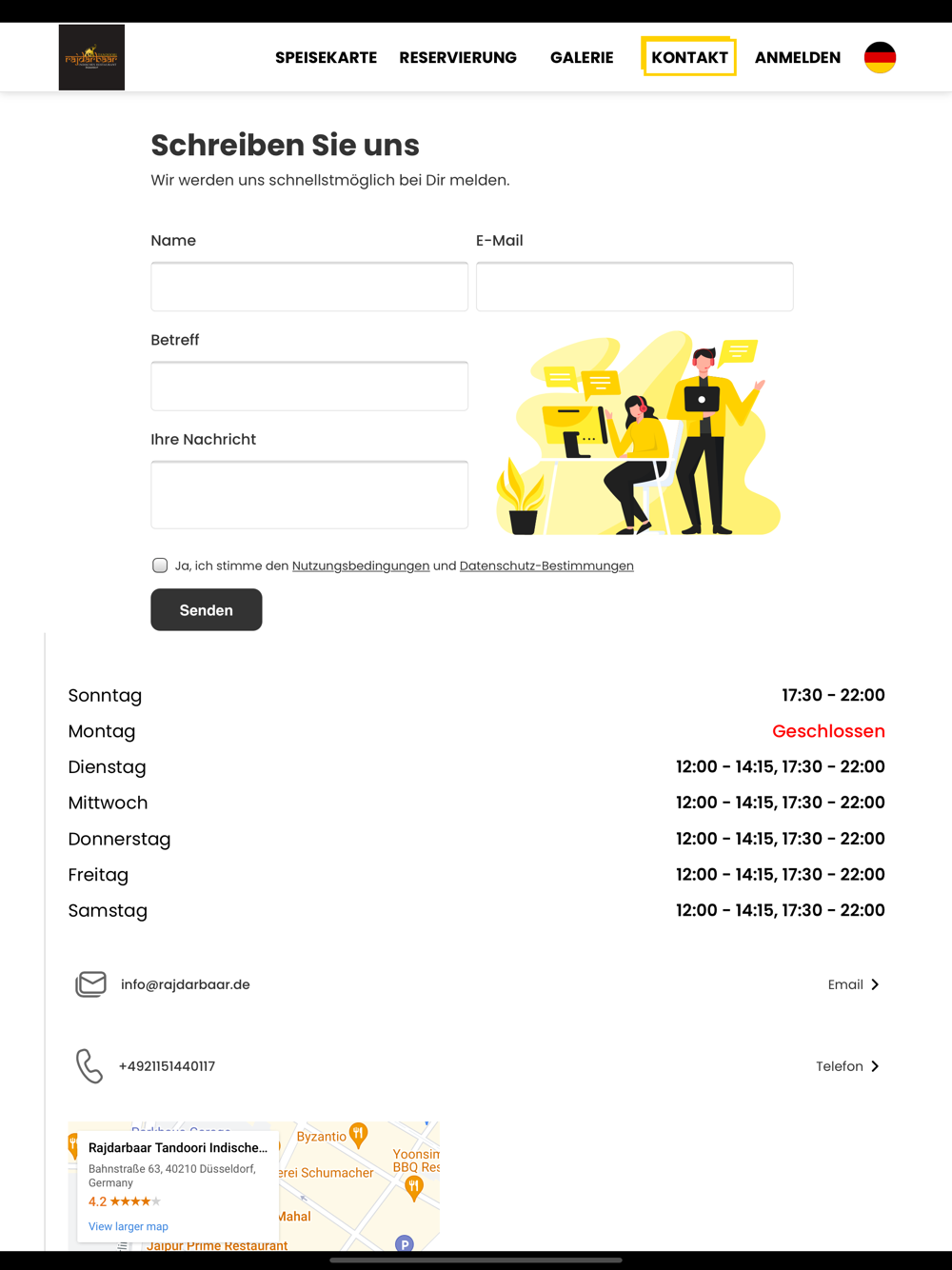 - Sehen Sie den Standort des Restaurants, die Öffnungszeiten und Kontaktinformationen