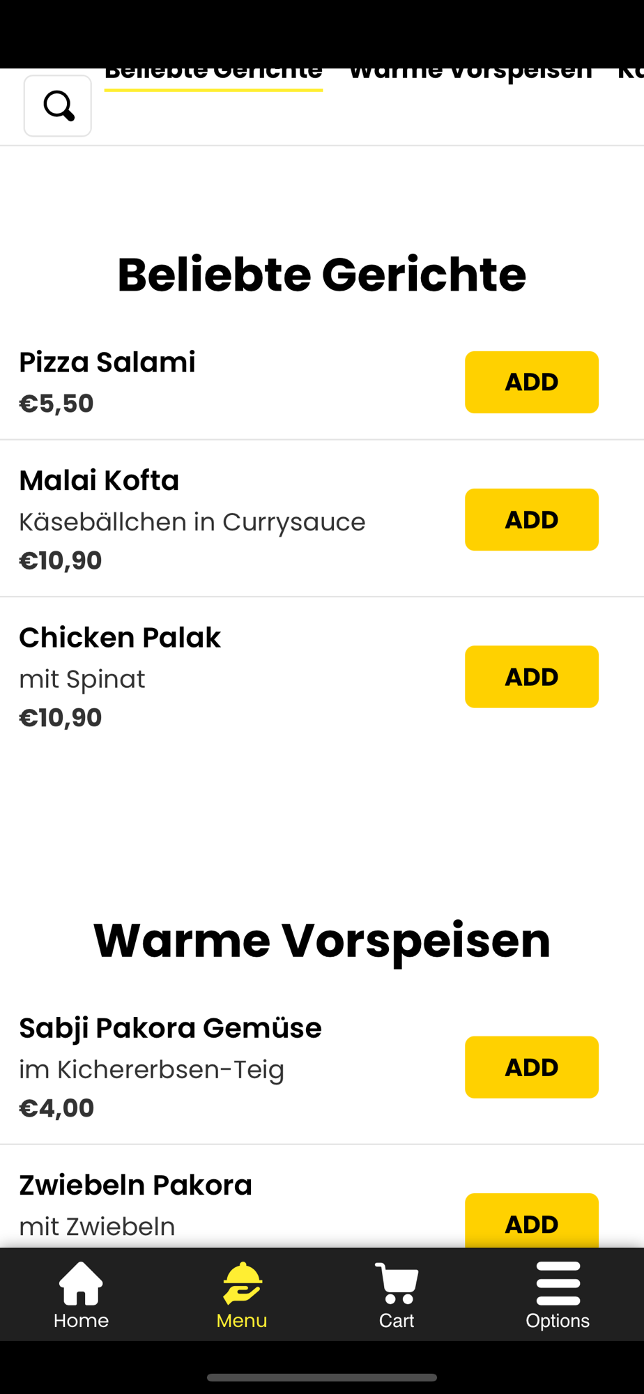 - Durchsuchen Sie die Speisekarte des Restaurants und sehen Sie sich alle anpassbaren Optionen im Voraus an