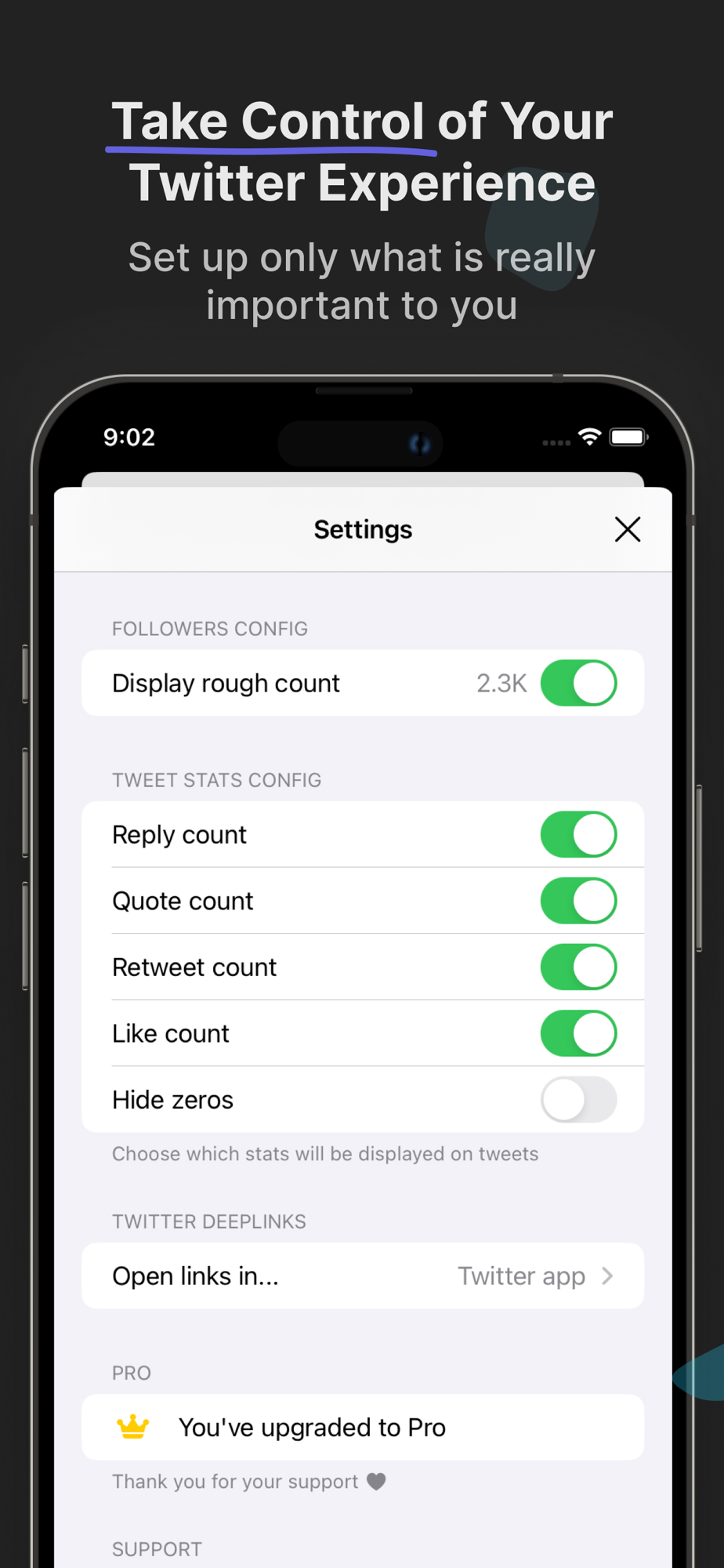 - stats for your latest tweets - replies, quotes, retweets, likes. Hide what you don't care about