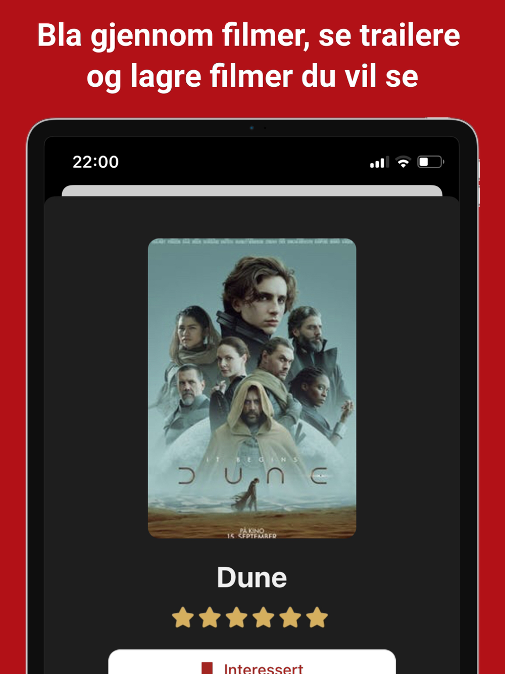 • Merk filmer du gleder deg til som "interessert", og få en påminnelse når de kommer på kino.