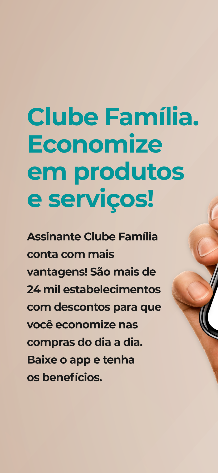 O Clube Família te dá descontos em compras online e em lojas físicas de todo o Brasil. Com o app do nosso Clube de Descontos, você acessa as principais marcas do país e utiliza o desconto na hora de pagar, de maneira rápida e sem custo.