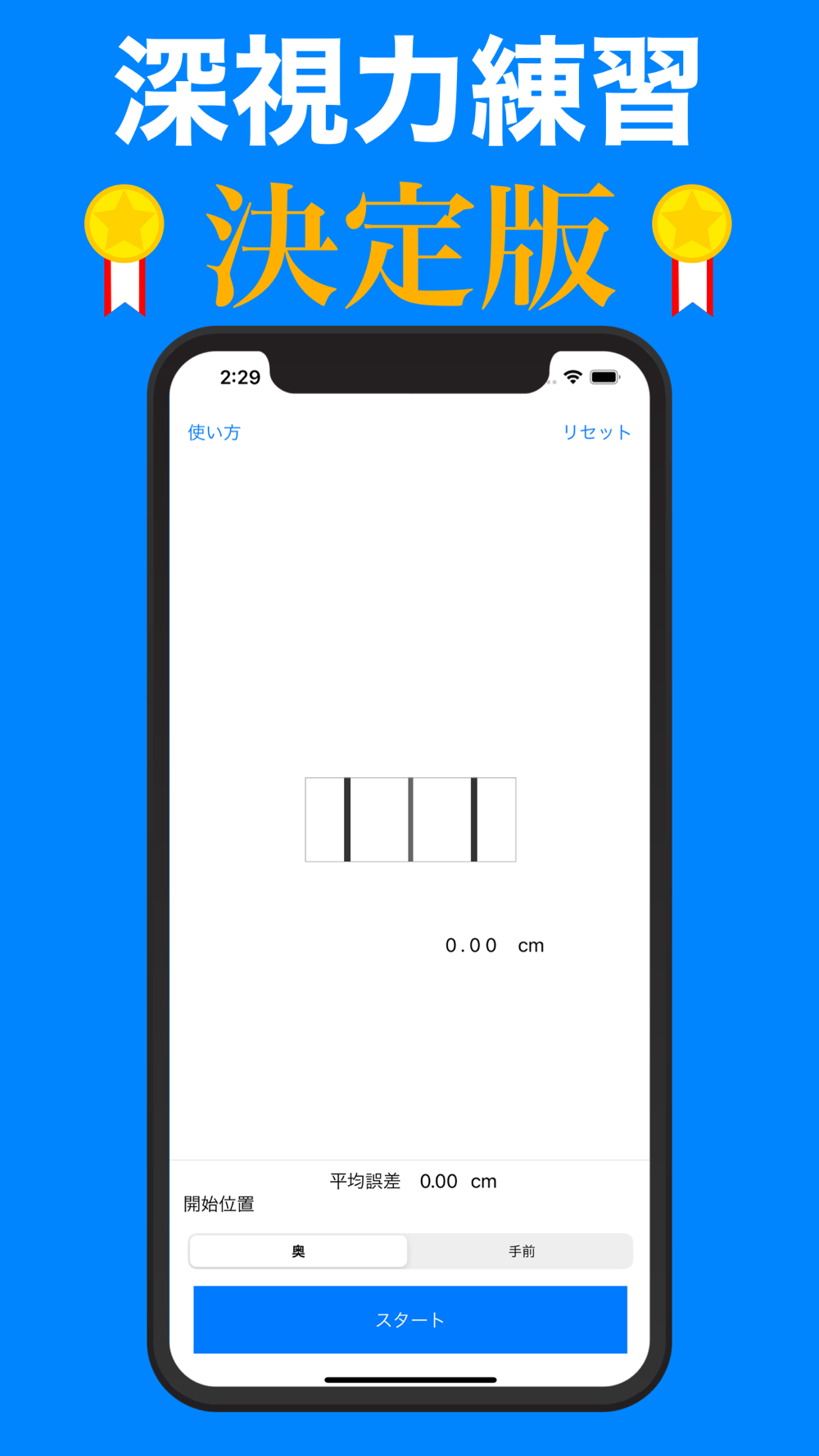 3.練習を3回繰り返して、平均誤差が2cm以下なら合格