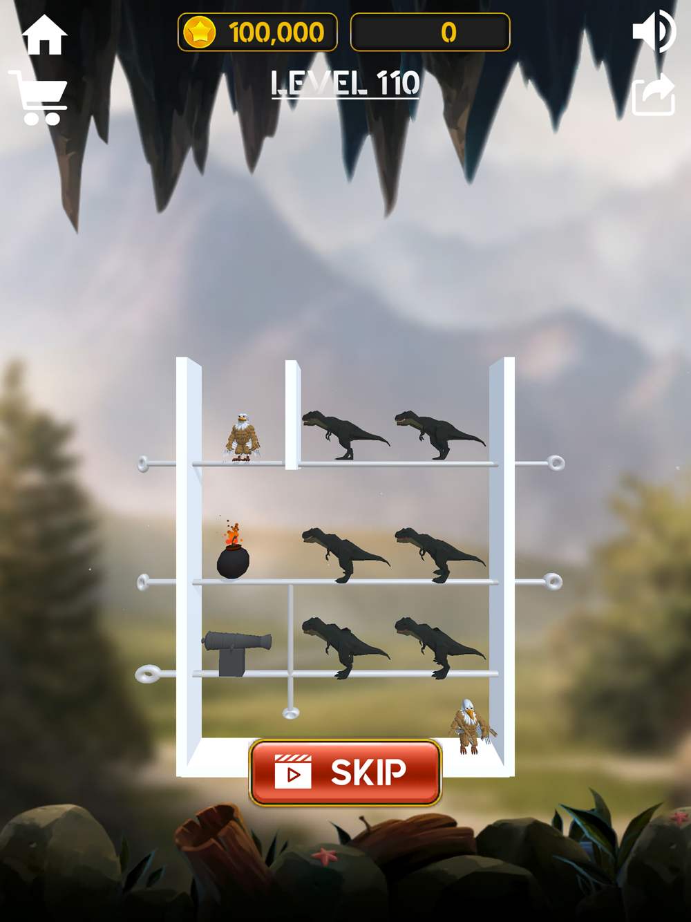 When you pull the pin to rescue Eagle, you pick up the treasure as you go from level 1 to level 360. Use your mind to pull pins to escape the monsters, and other big animals and situations on the way to rescue the Eagle. If you pull out the wrong order of the pins you may lose the game level and need to try again.