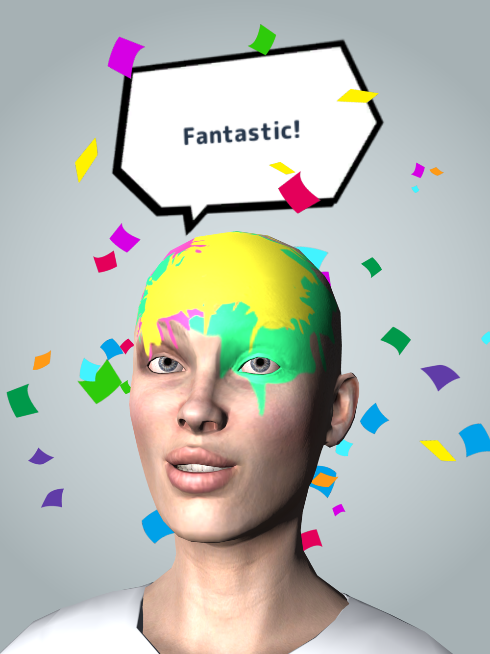Can you make a colorful head by hitting the colored ball with ink on it?