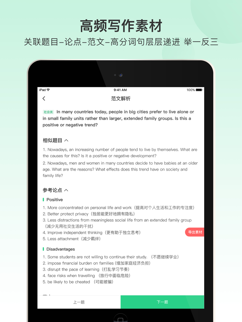 当季题库第一时间更新,新题抢先练!所有素材均由雅思前考官审核,真正地道表达~P2部分十种题材可供选择,素材更具针对性!